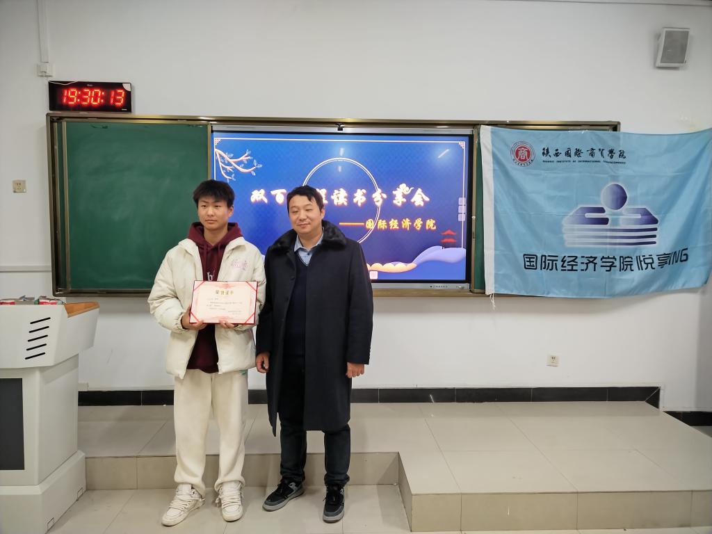 在颁奖典礼环节,辅导员刘翔老师给“双百工程”系列——阅读之星栾睿翔同学颁发了荣誉证书和奖品,以表彰他在双百工程阅读领域的贡献。栾睿翔同学表示,他会继续努力,为双百工程做出更大的贡献。