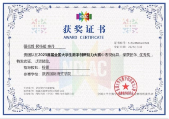 2023年12月29日,由全国数字创新联盟主办的2023首届全国大学生数字创新能力大赛(总决赛)在紧张有序的准备中拉开序幕。此次比赛共有1132支参赛队,来自全国26个省、自治区、直辖市、新疆生产建设兵团的307所高校参加了比赛。国际经济学院本次参加比赛的团队由电子商务协会和数据分析室联合组织学生参与竞赛,总共派出了16支参赛团队,经历了两轮比赛后,获得全国二等奖1项,三等奖2项,优秀奖2项;同时,国际经济学院获优秀组织奖1项,优秀指导教师奖2项。
