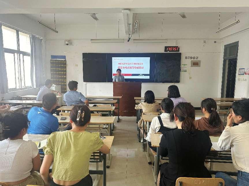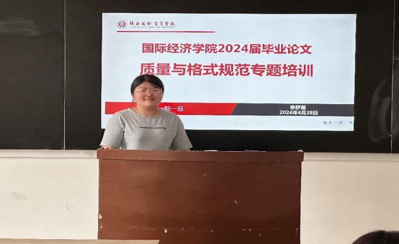 为提升我院2024届毕业生论文质量,确保毕业论文的学术规范,4月28日下午,在2教420教室,国际经济学院开展2024届毕业论文质量与格式规范专题培训。本次培训由国际经济学院大数据应用教研室李梦蕾老师主讲,院长助理张丽主持,国际经济学院全体教师参加。