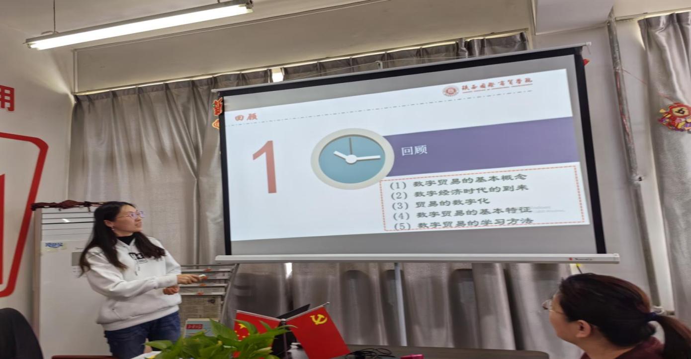 王艳老师分享了《数字贸易》课程的教学内容。通过对数字贸易的概念和特点,全球数字贸易发展前沿,以及中国目前数字贸易“东数西算”的发展布局,全景式概括了数字贸易领域的最新发展。王老师通过课堂回顾、播放视频、现场互动、横纵比较等丰富的教学方式,娓娓道来,如数家珍,将数字贸易课程的教学环节进行了展示。教研室教师进行互动交流,肯定其好的教学方面,也对其存在的不足之处提出改进建议。