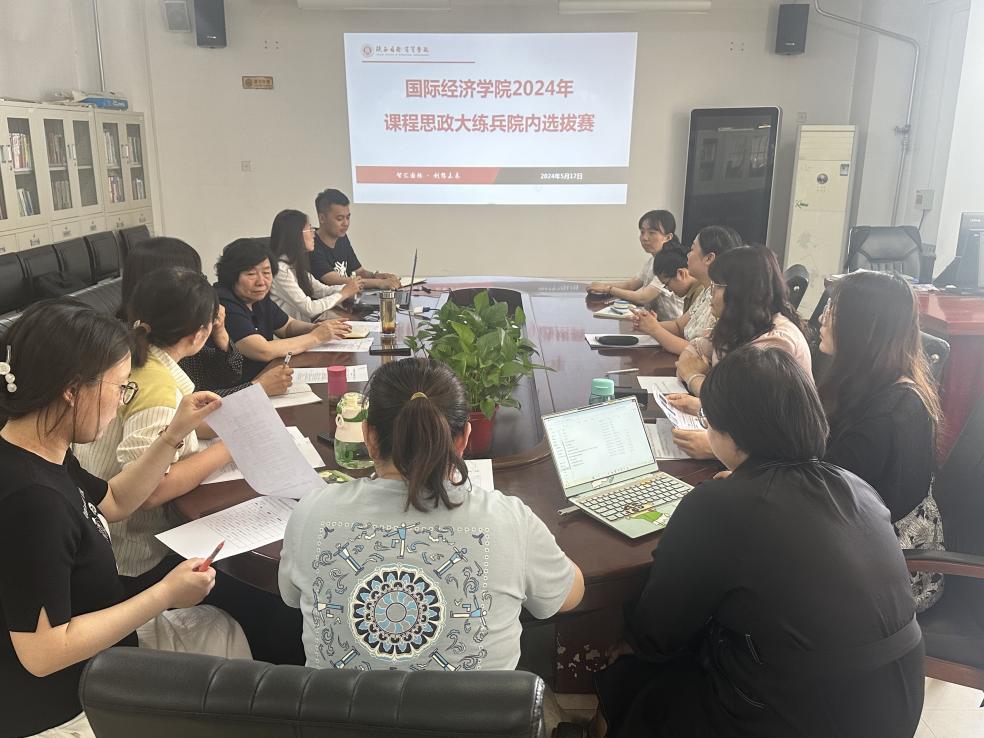 为提升学院教师思政育人水平,思政元素融入课堂教学能力,5月17日下午,国际经济学院开展了2024年度课程思政大练兵院级选拔赛。本次会议由院长助理张丽主持,韦林珍院长、史向军教授以及各教研室主任担任评委,通过各教研室选拔推荐,共有8名教师参加课程思政大练兵院内赛。