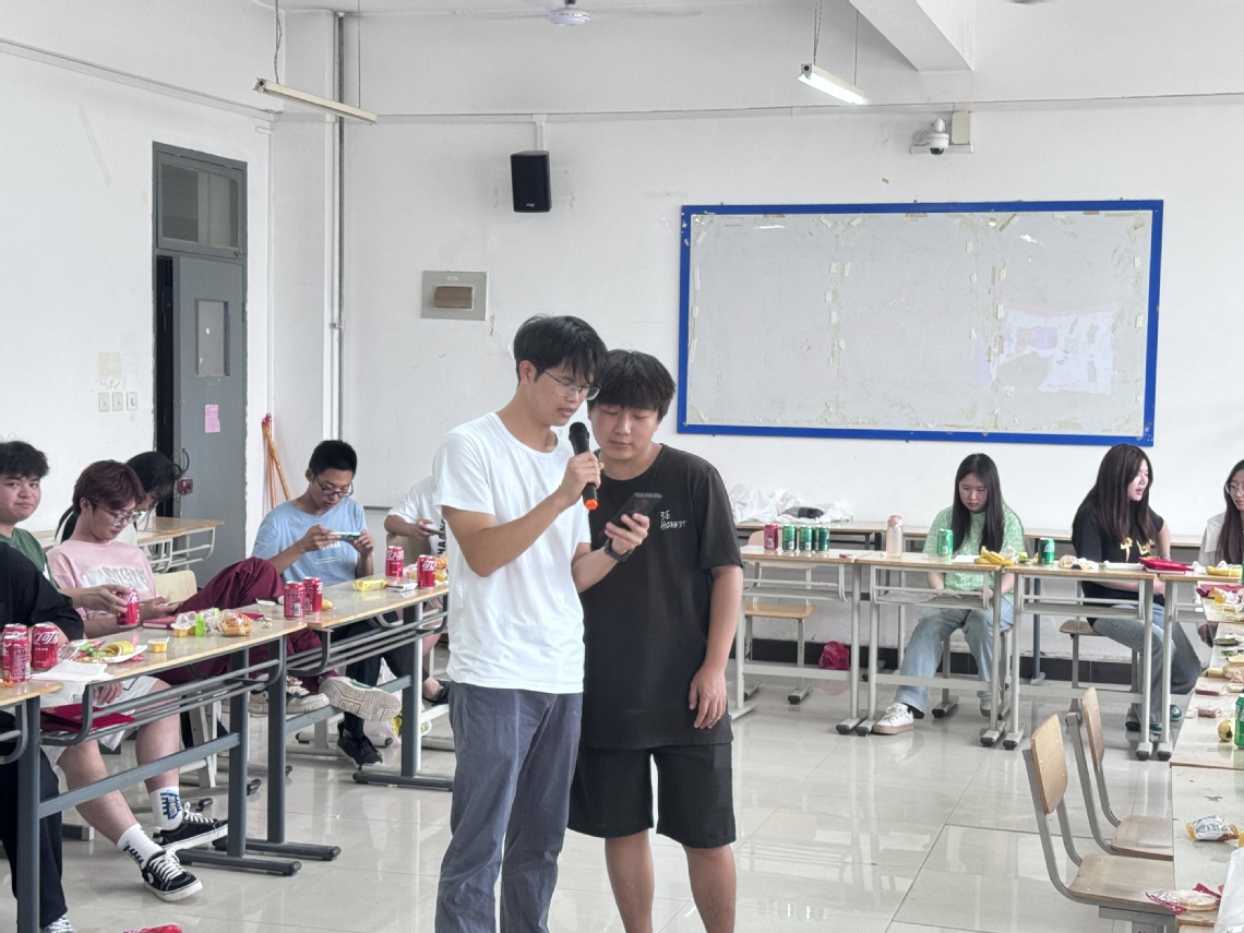本次组织生活会充满了欢声笑语和青春活力。活动中设置了多个有趣的游戏,抢凳子游戏中,同学们围绕着凳子快速移动,竞争激烈而欢乐;击鼓传花游戏更是让紧张与期待交织,精彩的表演不断呈现;数字炸弹游戏则考验着大家的反应和判断,现场不时传来阵阵惊呼与欢笑;报数成团游戏也让大家充分发挥团队协作精神。