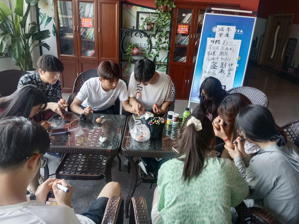 活动现场充满了浓厚的传统文化氛围。首先是对端午节由来的讲解,让同学们深入了解端午节的历史背景。接着,同学们在入口处的中式卷轴上签下自己的名字,完成独特的卷轴签到。随后的画彩蛋环节更是趣味十足,同学们在绘制彩蛋的过程中,既感受到了手工艺的乐趣,也寓意着生命力的旺盛。