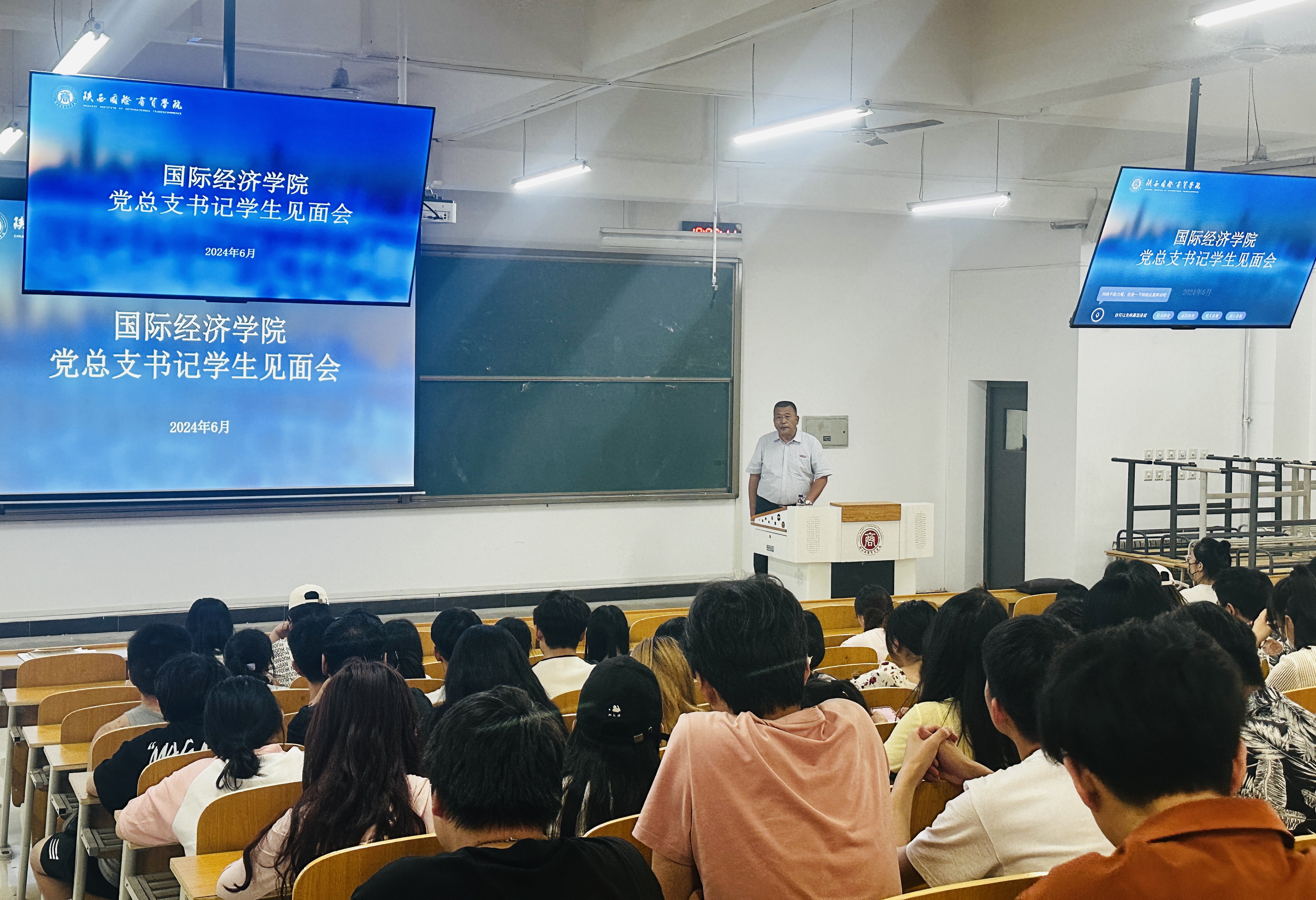 6月11日和6月13日,国际经济学院召开“新任党总支书记与学生见面会“,党总支书记王彪分别与三个年级的学生共聚一堂,面对面交流、回应学生关切。学院学生科干事常伟主持见面会,辅导员刘翔、何静参加会议。