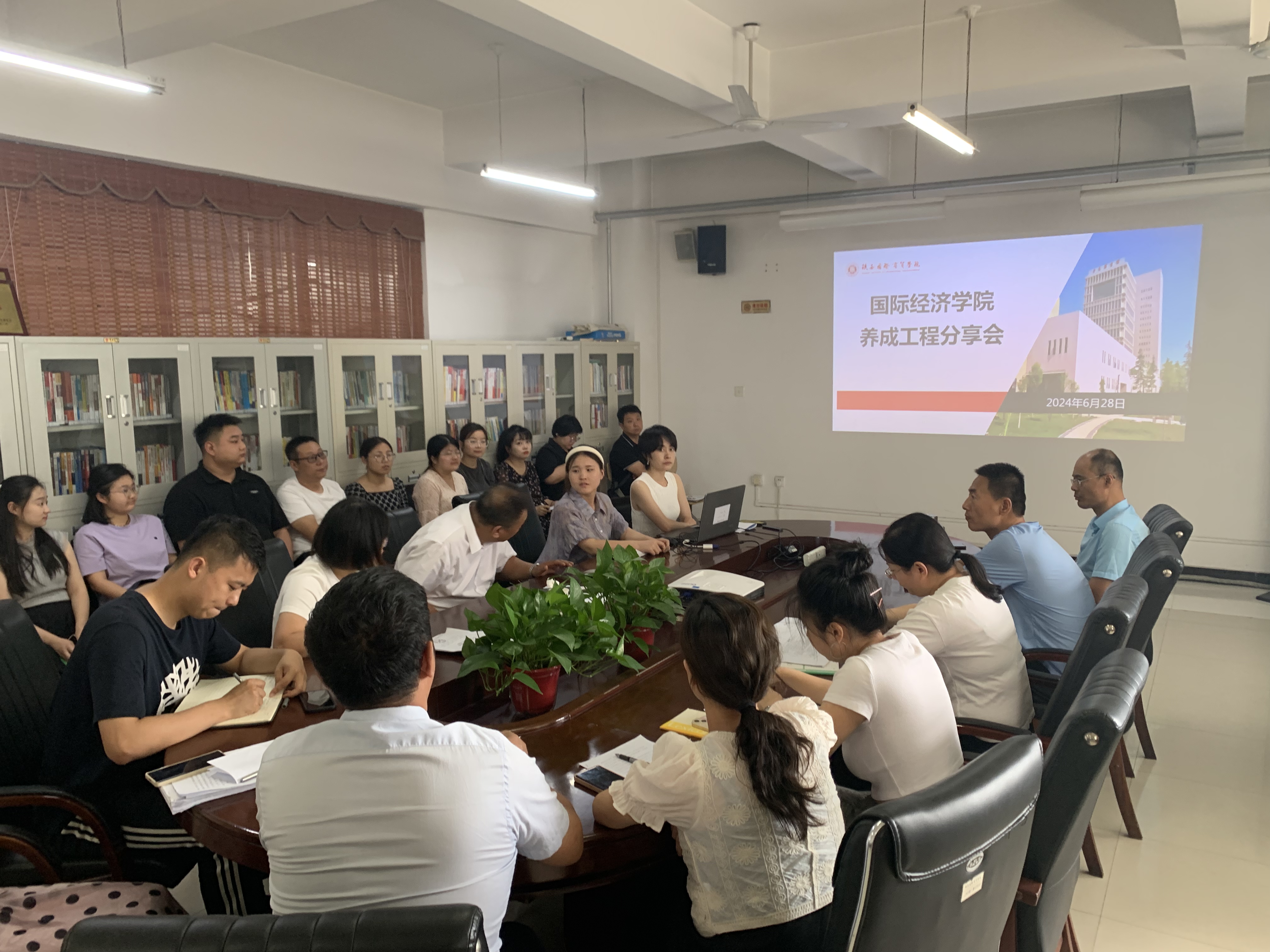 628下午国际经济学院西咸会议室召开养成工程分享会。会议由王彪书记主持,学院全体教工参加,此次分享会旨在总结和展示学院在养成工程方面的阶段性成果,进一步推动教师全面发展。