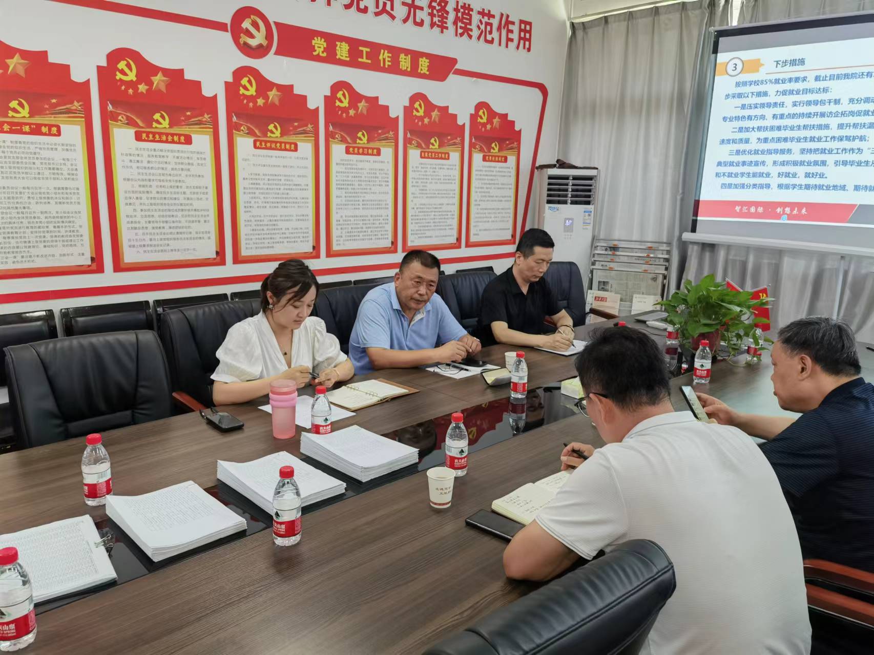 为推进我院2024届毕业生就业工作,2024年6月20日下午,太阳成tyc33455ccwww副校长甘世平以及招生就业处副处长苏斌带领就业工作检查组一行8人莅临我院检查指导2024届毕业生就业工作。检查工作在2J419会议室进行,学院院长冯明、党总支书记王彪、书记助理、毕业班辅导员常伟参加。
