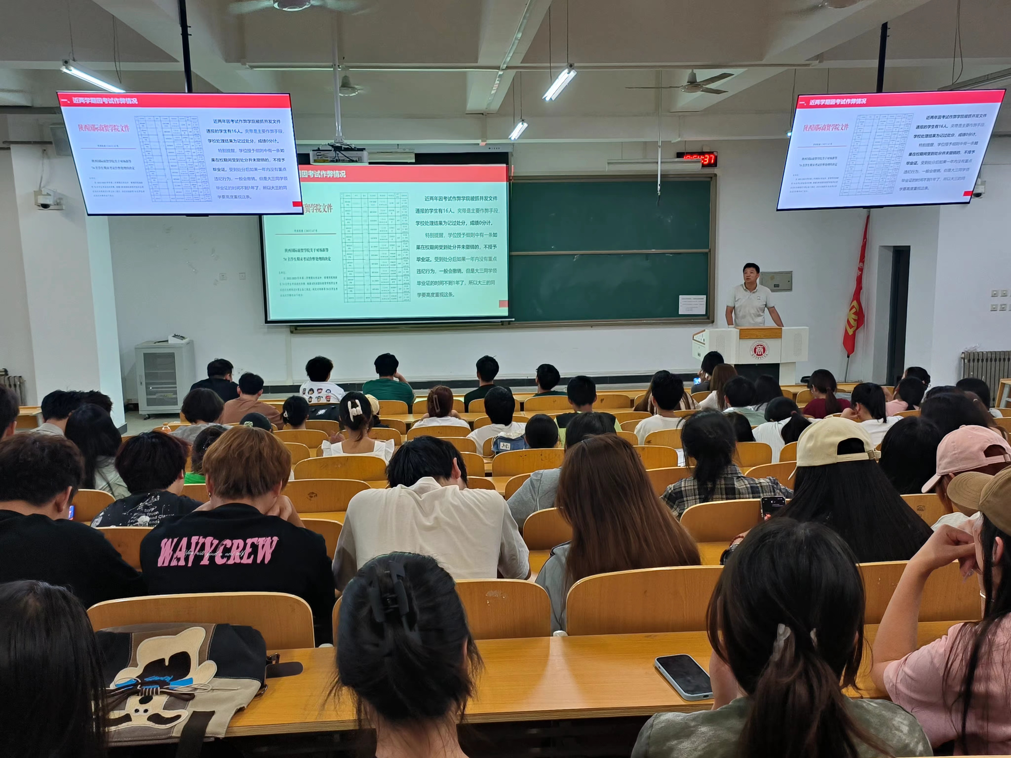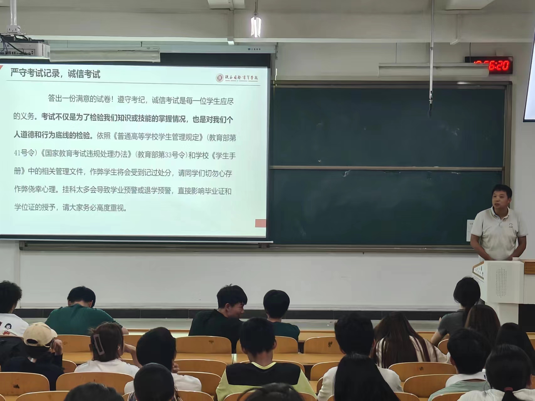 为了更好地维护良好学风,维持考试纪律,规范日常要求。2024年6月24-28日,国际经济学院各年级陆续开展主题为“认真备考,诚信考试”的主题班会,会议分别由各年级辅导员老师主持,全体学生参加。此次班会旨在加强同学们的考试纪律意识,培养良好的学习习惯和诚信品质,为即将到来的期末考试做好充分准备。