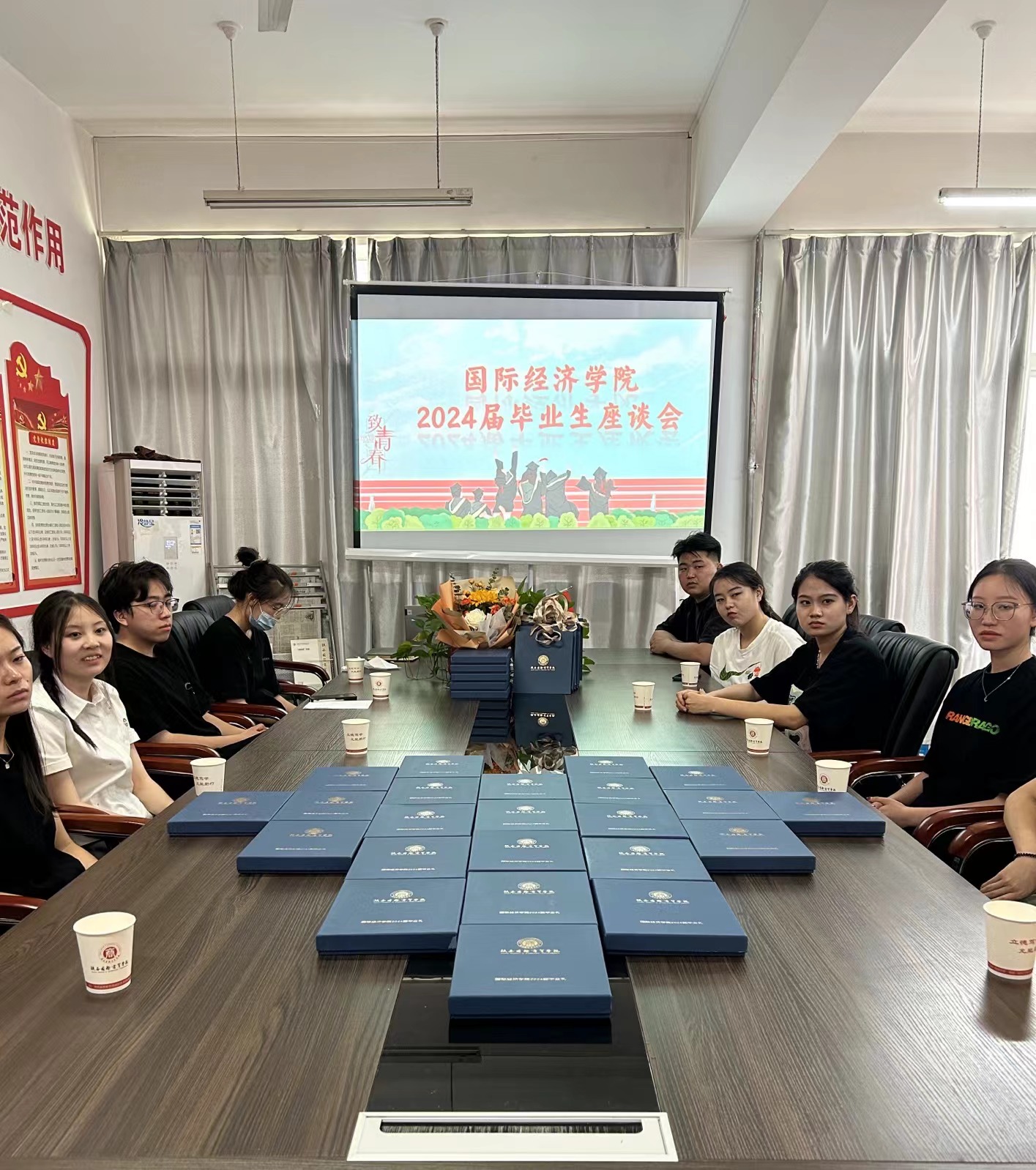 座谈会中师生在温馨的氛围中围桌而坐,共谈青春,共话未来。毕业生代表逐一进行自我介绍并分享毕业去向,回忆了自己在国际经济学院度过的难忘时光。多名同学表示,在国际经济学院学习期间,深刻感受到学院浓浓的人文关怀,并对学院有着强烈的认同感和归属感。