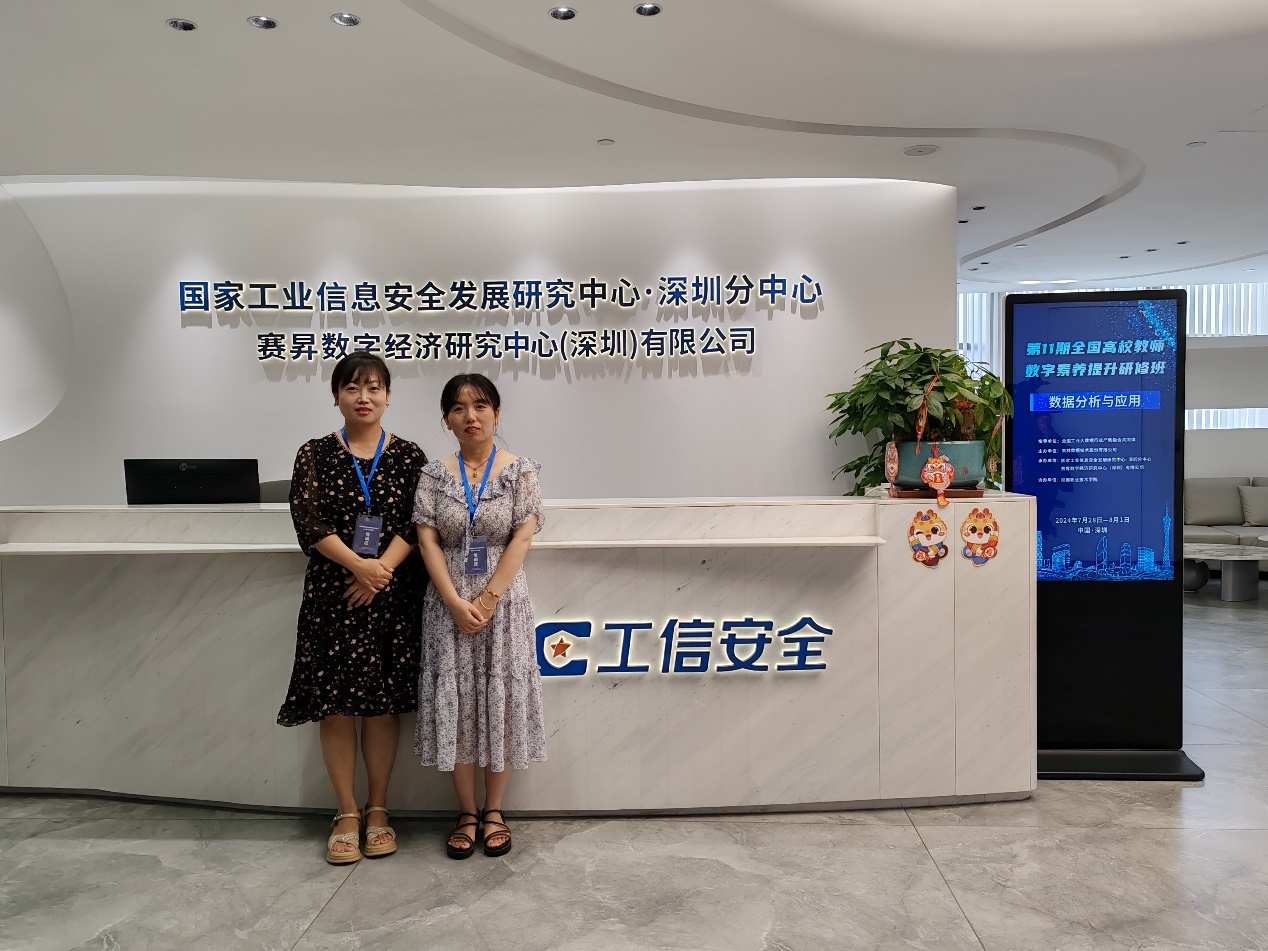 近日,为了积极响应国家教育数字化战略行动,深入贯彻习近平总书记关于教育的重要论述,我院大数据应用教研室姜怡悦、刘俊两位教师于7月28日,参加了由美林数据技术股份有限公司主办、国家工业信息安全发展研究中心深圳分中心承办的第11期全国高校教师数字素养提升研修班。此次研修班旨在提升高校教师的数字素养,推动信息技术与教育教学的深度融合,促进教育现代化进程。