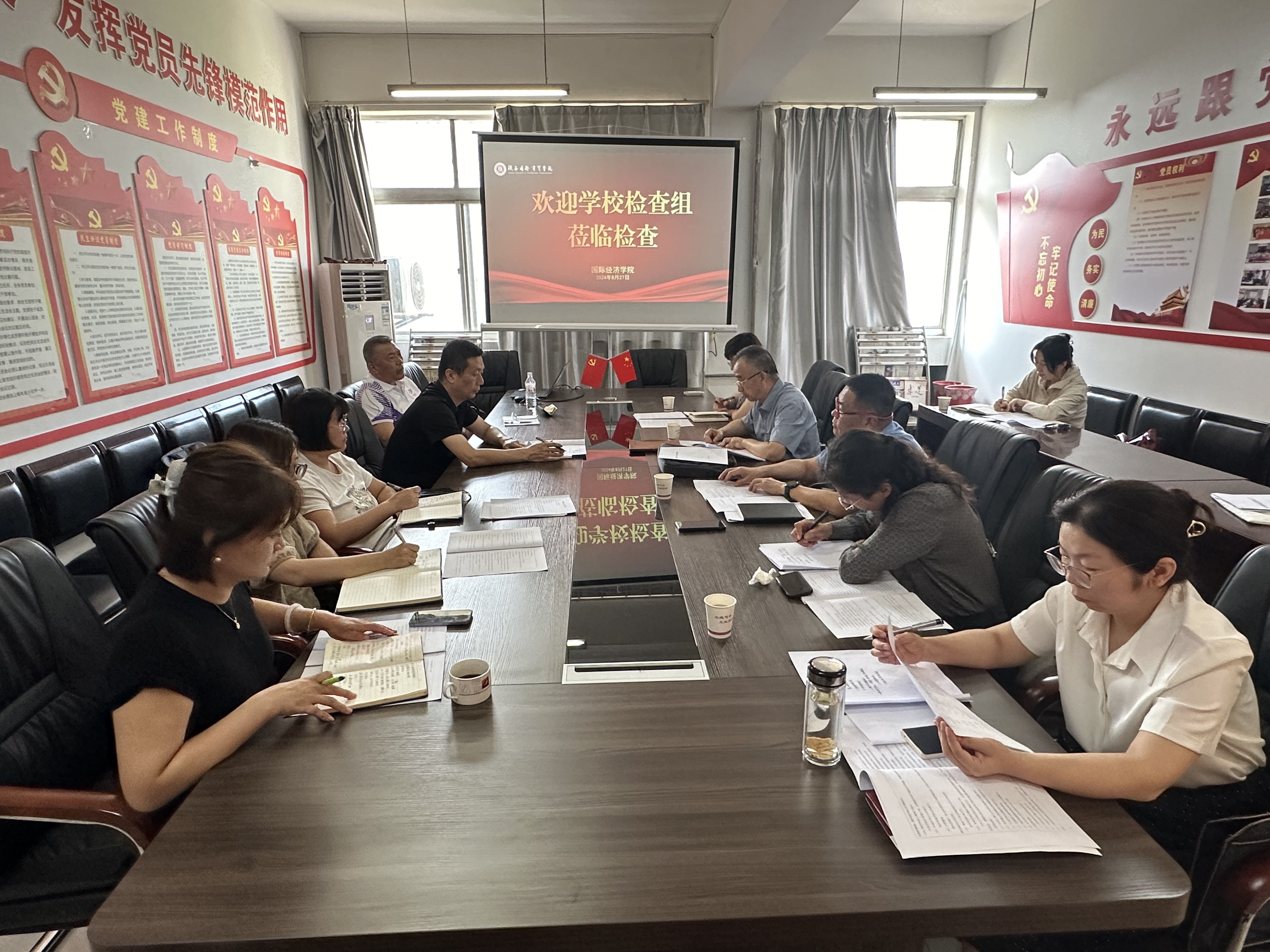 会上,检查组分别对学校前期下达的计划任务的进展情况进行了检查,并对工作进展情况及成效与相关支撑开展质询问答。