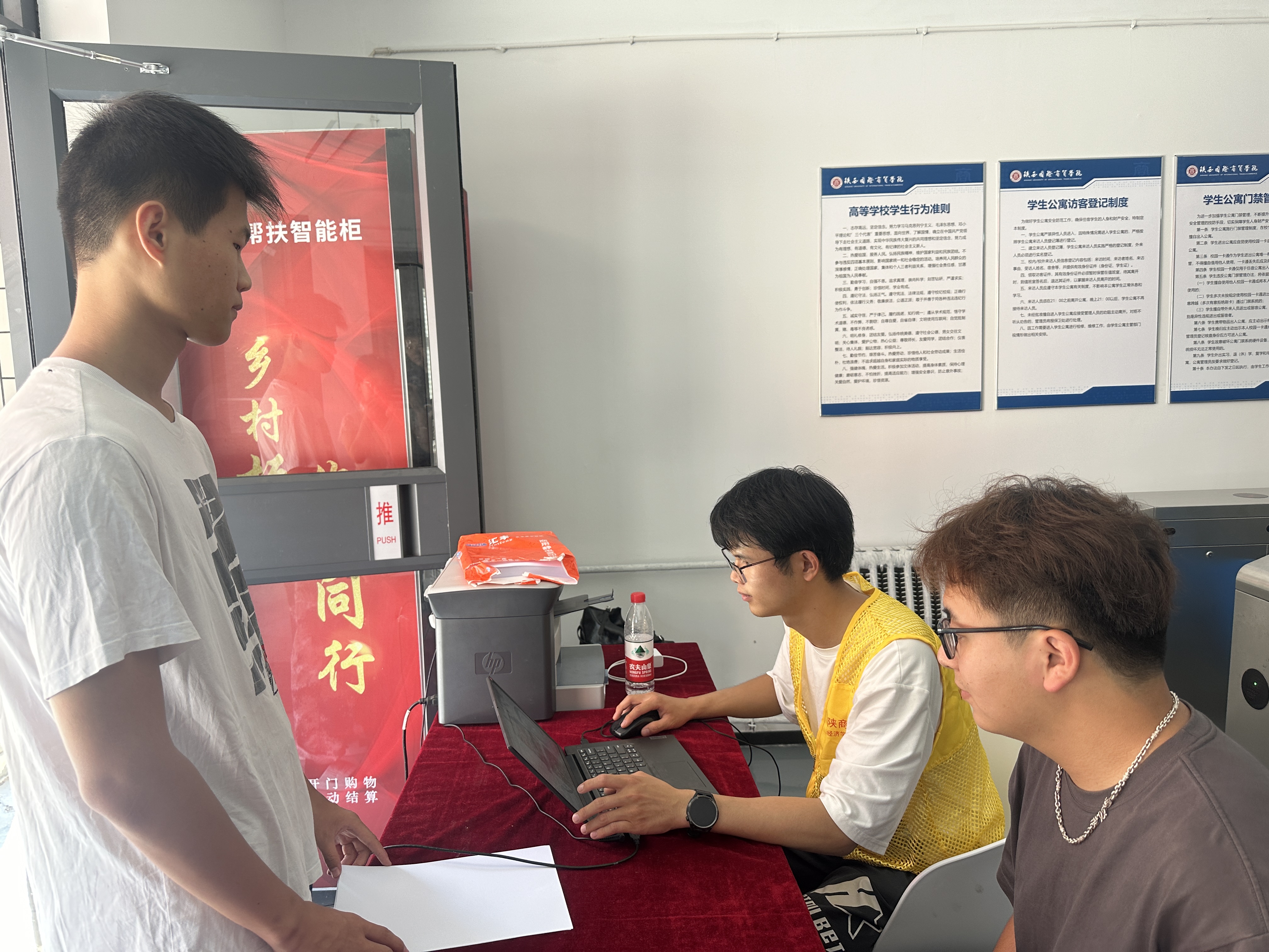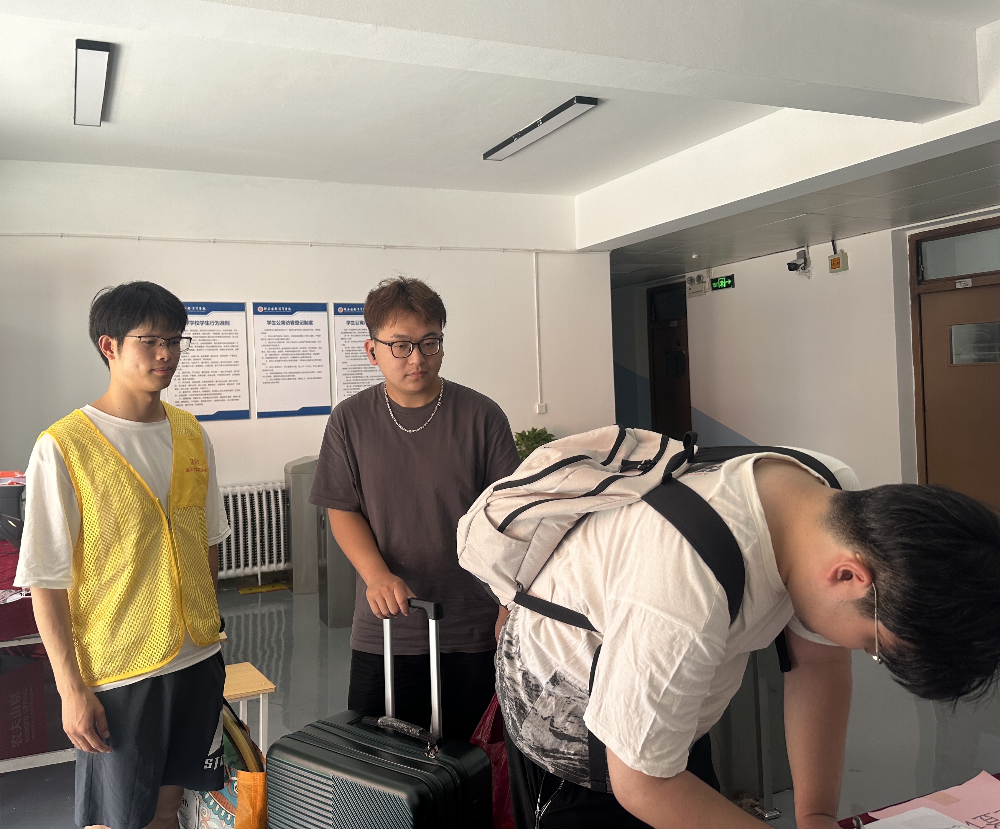 在宿舍报道点,志愿者们不仅协助新生们快速完成入住登记,还耐心地为他们讲解宿舍的各项设施。从空调的调节到水电的安全注意事项,志愿者们一一细致解答,确保新生们能够迅速熟悉并适应宿舍生活。此外,志愿者们还热情地为新生们介绍了校园内的其他重要设施位置,包括食堂、澡堂、图书馆和体育场馆等。他们不仅提供了具体的方位指引,还分享了各自的生活经验,帮助新生们更好地规划自己的校园生活。