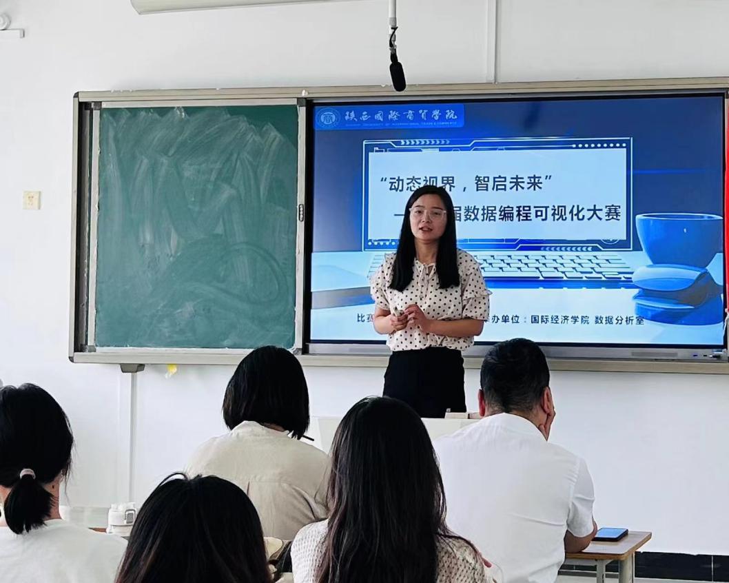 为引导学生秉承挖掘数据深层价值、展现数据动态魅力的核心理念,旨在通过编程与可视化技术的融合应用,激发参赛者的创新思维与实践能力,培养大数据领域的专业人才,促进产业融合与升级,共同开启智慧未来的新篇章,为经济社会发展贡献数据力量。国际经济学院大数据管理与应用专业,于2024年9月25日下午在2J-417举办“动态视界,智启未来”第一届数据编程可视化大赛,本次大赛由数据分析室社团负责人杨雷组织。
