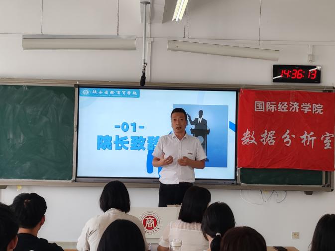 大赛第一项由国际经济学院院长冯明致辞,说明此次比赛同大数据管理与应用专业的契合性,高度肯定大数据管理与应用专业的前沿性,鼓励学生积极提升将数据转化为洞察力的能力,以动态视界探索数据海洋,用智慧之光启迪未来之路。