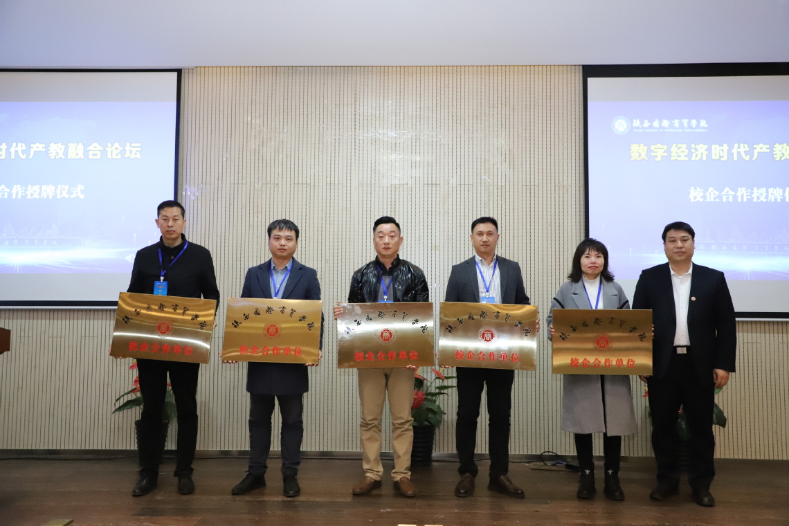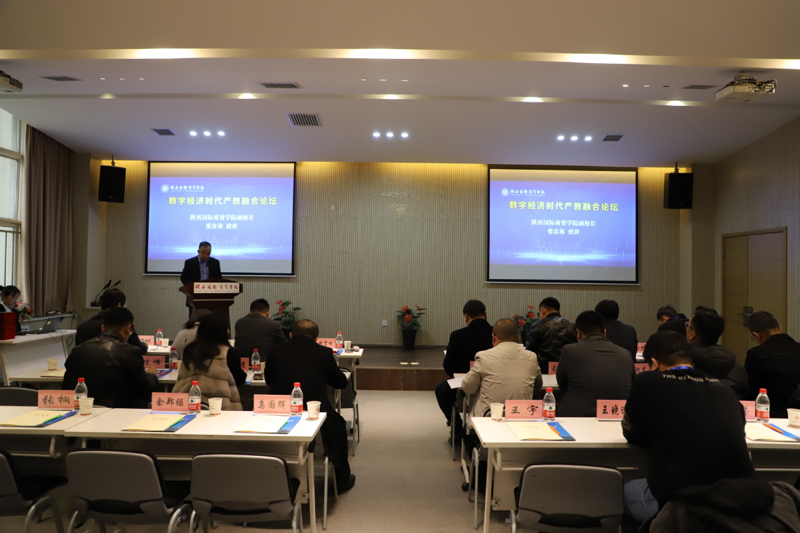 2023年11月25日下午,太阳成tyc33455ccwww数字经济时代校产教融合论坛成功举办。太阳成tyc33455ccwww副校长张富林教授、校长助理张利军、教务处处长蔺小清,以及京东西北分公司校企合作经理白光泽、东方财富信息股份有限公司经理李博伟、美林数据技术股份有限公司总监杨东涛、新道科技股份有限公司西北区总经理孙胜儒、陕西众维云创运营服务有限公司经理程雪姣等23家企业负责人和部分师生代表100余人参加了本次论坛。论坛由国际经济学院执行院长冯明主持。