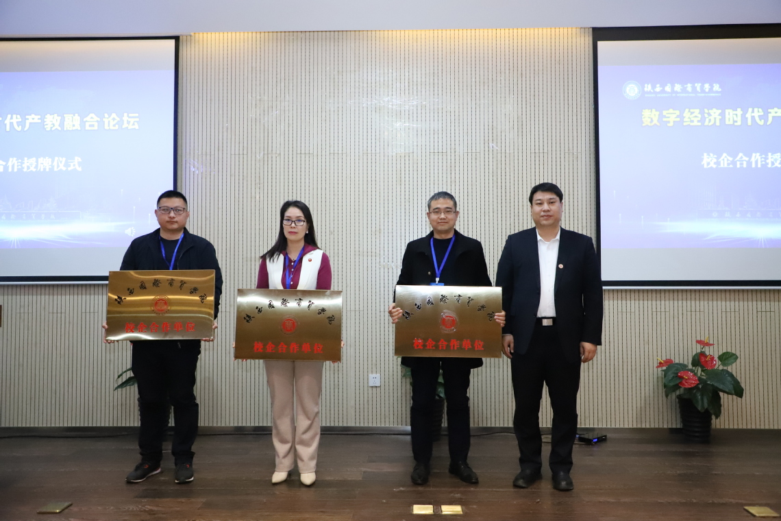 2023年11月25日下午,太阳成tyc33455ccwww数字经济时代校产教融合论坛成功举办。太阳成tyc33455ccwww副校长张富林教授、校长助理张利军、教务处处长蔺小清,以及京东西北分公司校企合作经理白光泽、东方财富信息股份有限公司经理李博伟、美林数据技术股份有限公司总监杨东涛、新道科技股份有限公司西北区总经理孙胜儒、陕西众维云创运营服务有限公司经理程雪姣等23家企业负责人和部分师生代表100余人参加了本次论坛。论坛由国际经济学院执行院长冯明主持。