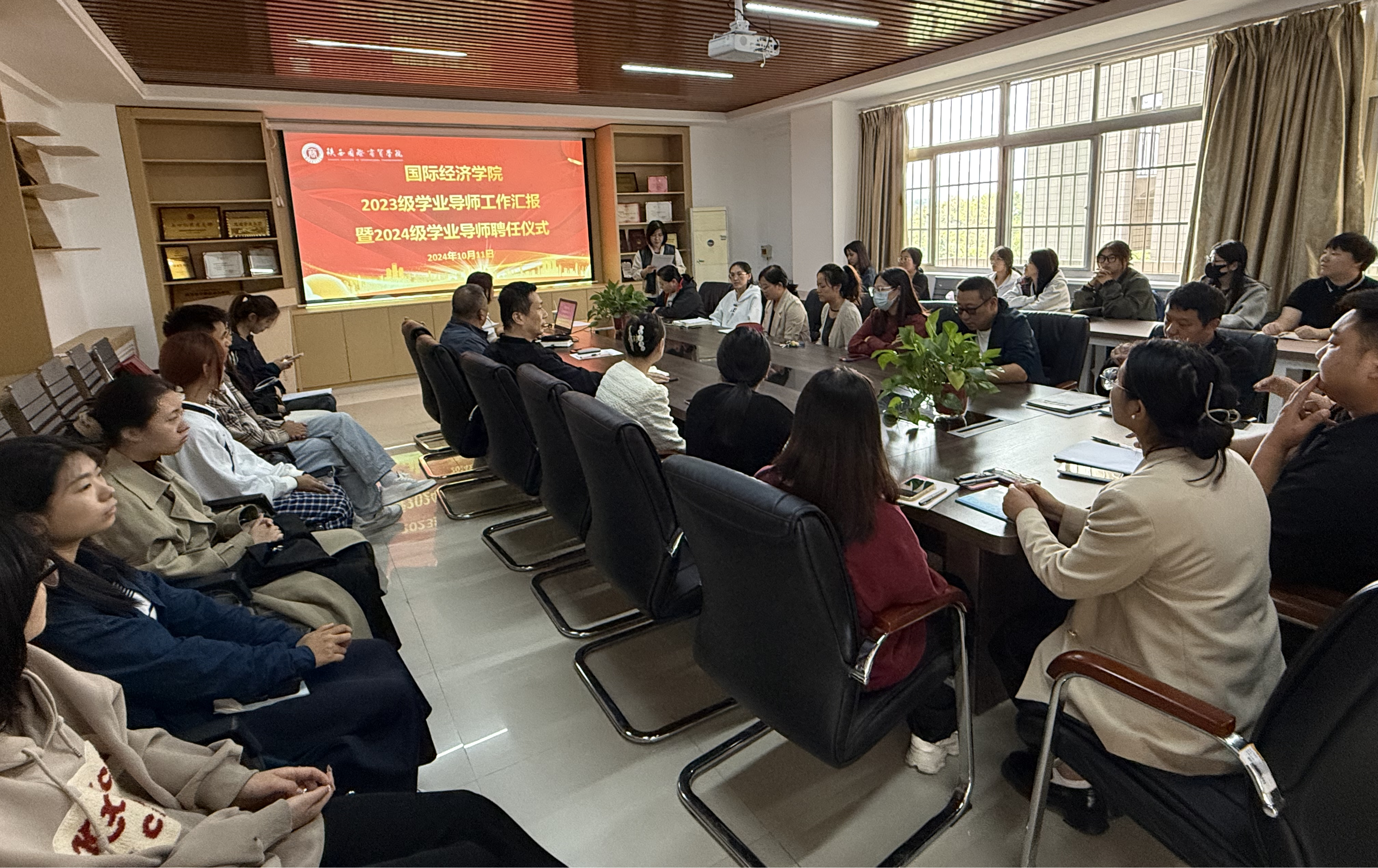 为贯彻落实立德树人的根本任务,强化全员育人、全程育人、全方位育人的“三全育人”格局,深化育人模式改革,积极发挥教师在学业指导上的专业优势,10月11日中午13:30国际经济学院隆重召开学业导师工作交流会暨2024级学业导师聘任大会。会议由学院副院长张丽主持,参加会议的有学院院长冯明、党总支书记王彪、各教研室主任、学业导师、辅导员及学生代表。