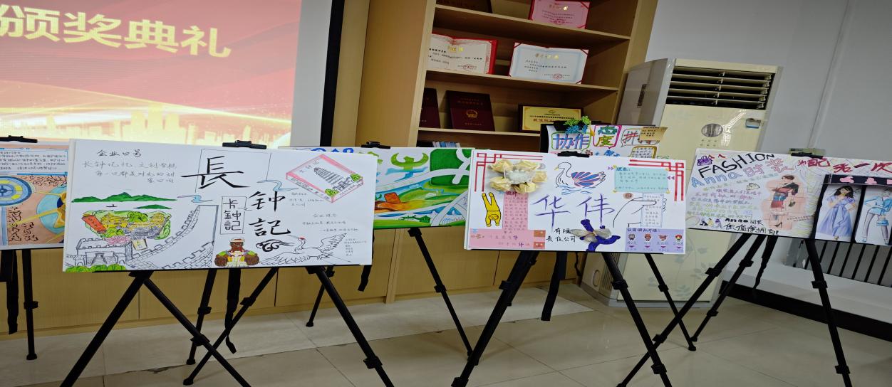 本次大赛自启动以来,得到了众多学生的积极响应和热情参与,同学们根据自己对行业企业的了解,用手中的画笔和智慧,诠释对企业文化的深刻理解和独特展示。通过教师指导,小组协商,同学们用独特的视角展示企业文化,每一幅作品凝聚着同学们的心血与汗水,每一个创意都闪耀着青春的光芒。经过激烈角逐,优秀作品脱颖而出,颁奖典礼现场气氛热烈,为这场充满创意与活力的赛事画上了圆满的句号。