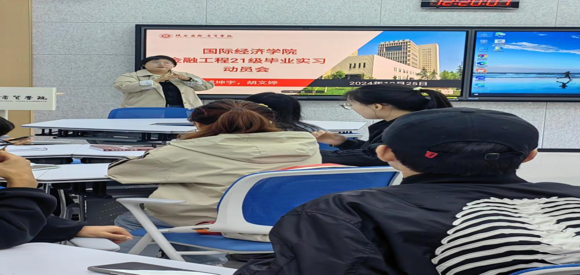 为落实毕业生实习与就业相关工作,促进2025届毕业生顺利实现实习与就业,我院金融工程专业于10月26日中午在7教207教室举办了2025届毕业生毕业实习动员大会,会议由金融教研室胡文婷老师主持,成坤宇老师及金融工程专业B2101班全体同学参加。