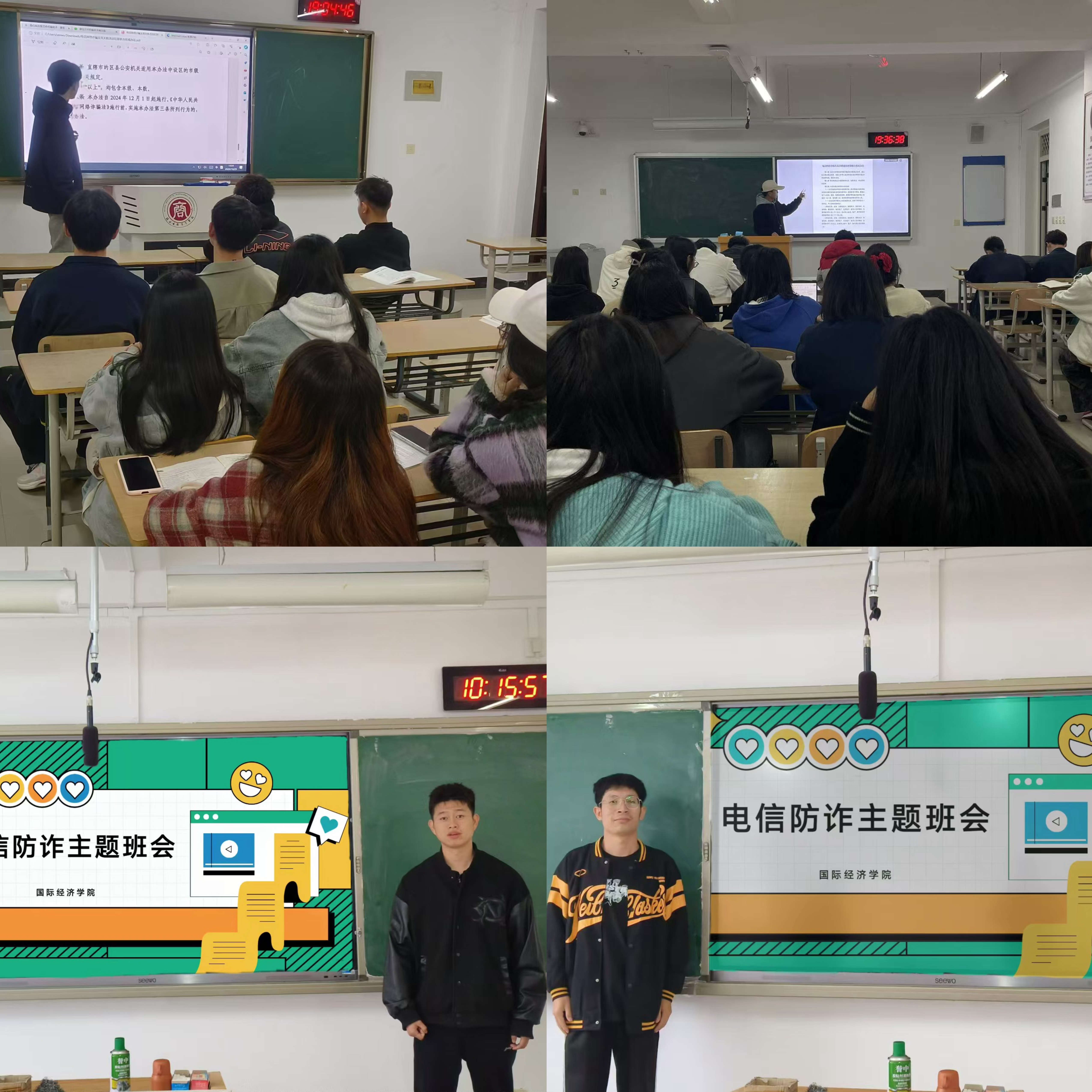 为进一步加强校园防范电信诈骗宣传力度,提升学生的安全防范意识,预防和减少各类诈骗事件,共同营造安全和谐的校园环境。10月30日,国际经济学院各年级分别召开防范电信诈骗班会,班会由各班班长主持,全班学生参加。