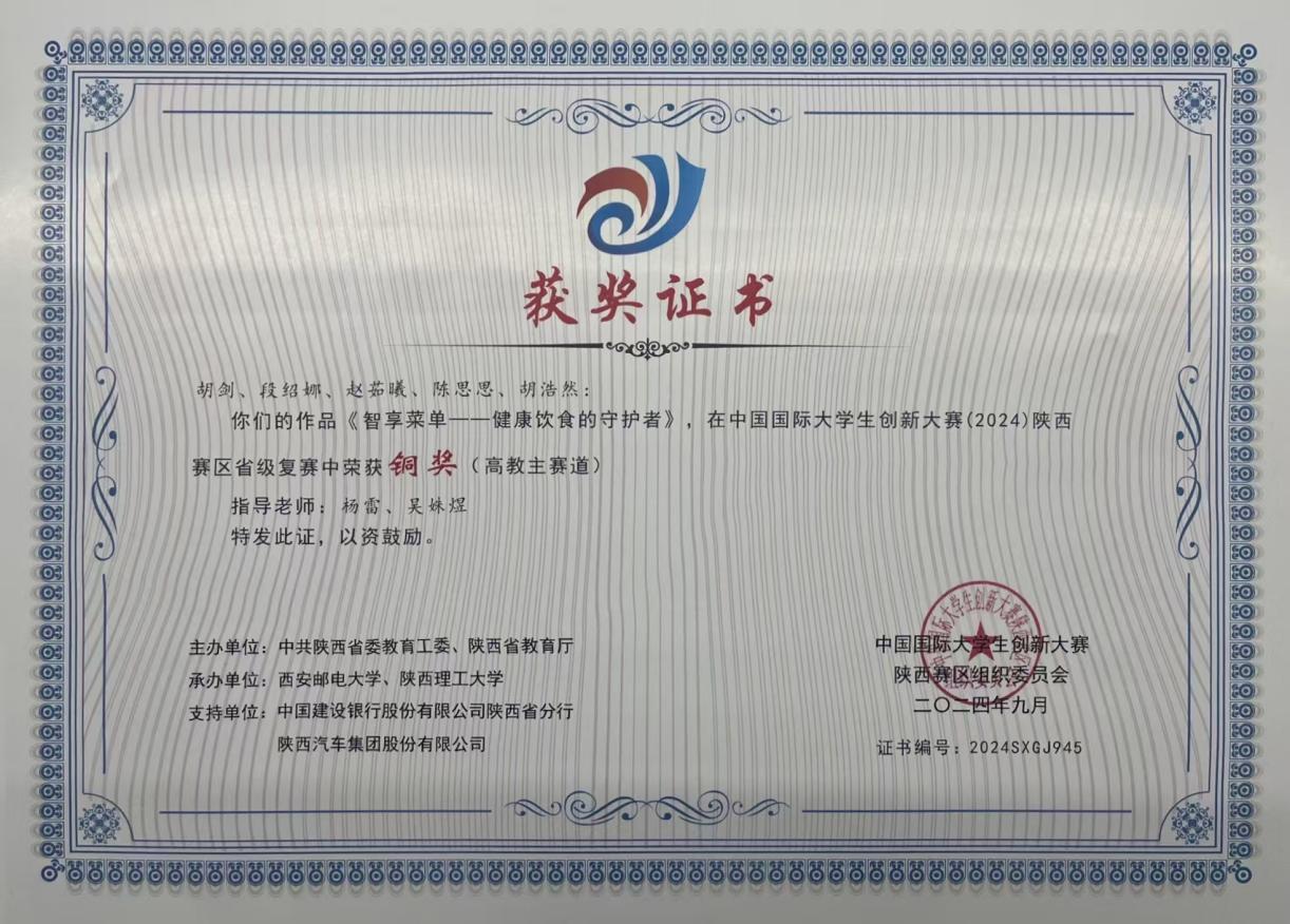 中共中央总书记、国家主席、中央军委主席习近平回信勉励中国国际大学生创新大赛参赛学生代表,强调创新是人类进步的源泉,青年是创新的重要生力军,希望他们弘扬科学精神积极投身科技创新,为促进中外科技交流推动科技进步贡献青春力量。在中国国际大学生创新大赛(2024)中,我院学子凭借卓越的创新能力和团队协作精神,从众多参赛队伍中脱颖而出、取得新突破。在高教主赛道荣获铜奖1项,充分展现了学院在创新教育领域的深厚实力和学子们的创新风采。
