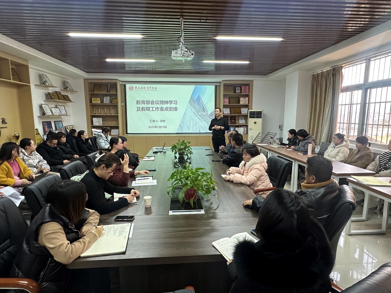 会议开始,冯明传达了2025年全国教育工作会议的核心精神。他强调,教育强国建设已经进入关键阶段,学院全体教职工要深刻领会会议精神,将教育部的决策部署转化为实际行动,不断提升教育教学质量,推动学院各项事业稳步发展。
