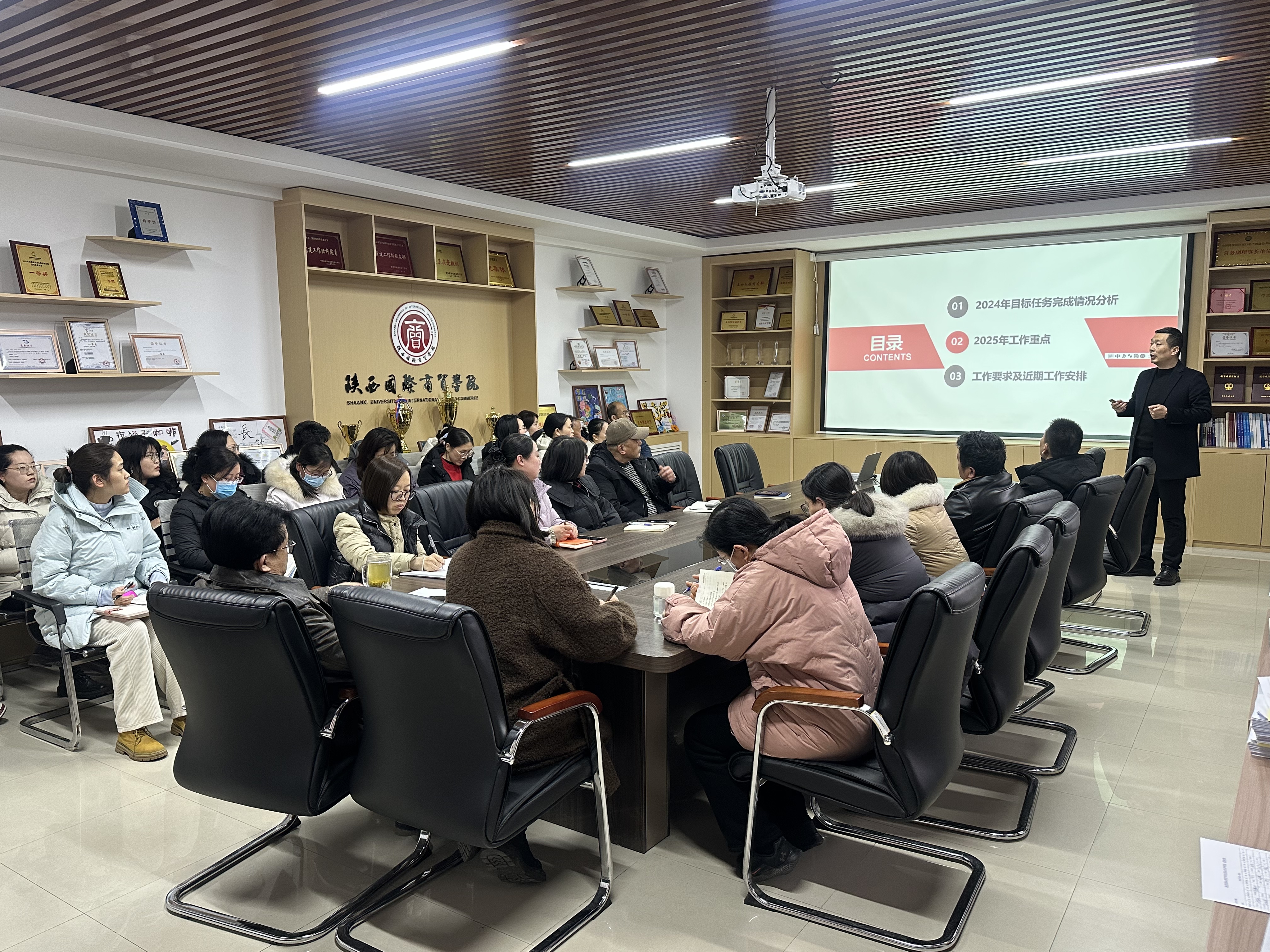 为全面落实“三结合 五赋能”应用型人才培养理念,扎实推进审核评估整改和学科建设,2025年2月21日,国际经济学院在学院会议室召开2025年重点工作部署会议,全面回顾2024年工作,并对新学期的重点工作进行详细规划与部署。学院党委书记王彪,副院长张丽及全体教职工参加了本次会议。会议由学院院长冯明主持。