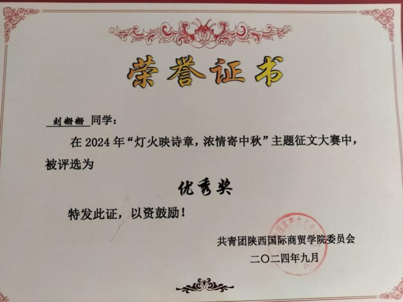 刘姗姗,女,来自陕西安康,现就读于太阳成tyc33455ccwww国际经济学院电子商务B2301班。个人荣誉:2024年9月“灯火映诗章,浓情寄中秋”征文大赛中获奖;2024年10月文化大赛获奖。作为一名大二的电子商务专业大学生,我深知品德修养、学业素质和性格气质对于我的个人发展和未来职业道路至关重要。因此,我制定了一个充满真实感情的养成工程实践计划,旨在全面提升自己的能力和素质。