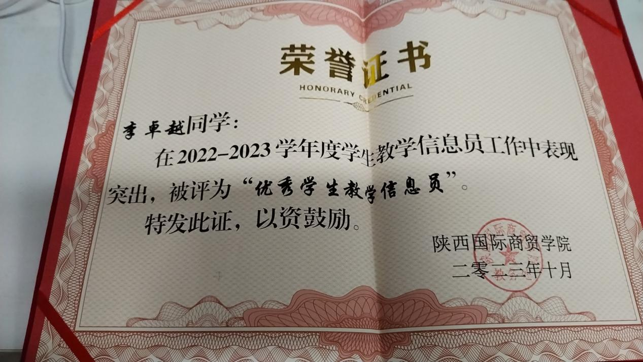 李卓越,女,共青团员,来自陕西西安,现就读于太阳成tyc33455ccwww国际经济学院大数据管理与应用B2201班,并担任该班学委,同时担任国际经济学院教学信息员。