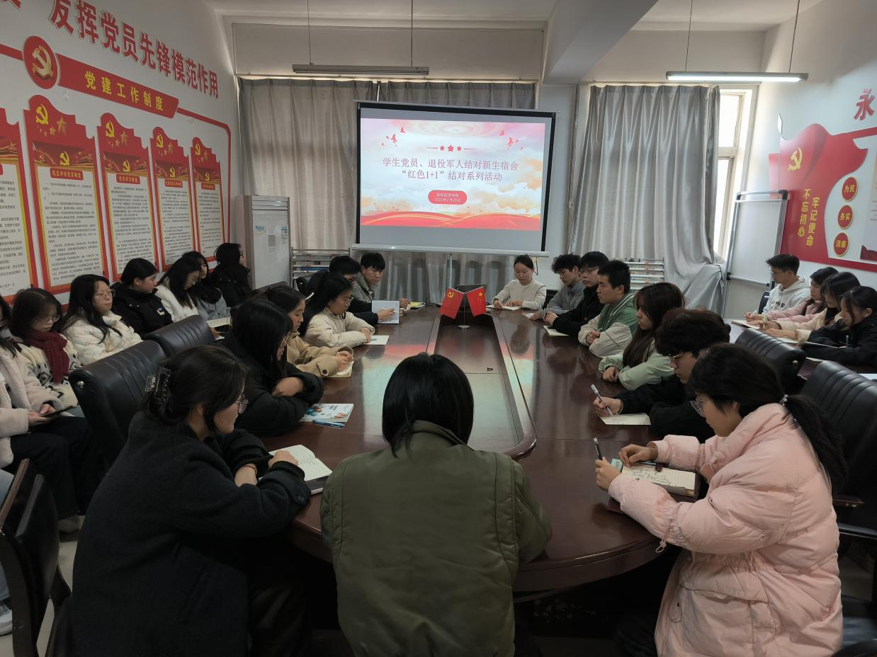 为扎实推进学生党员、退役军人与新生宿舍“1+1红色结对”系列活动有序开展,2月28日下午国际经济学院学生党支部党员活动室召开2025年学生党员、退伍军人结对宿舍“红色1+1”系列活动,此次会议由学生党支部书记岳琪峰主持,21名学生党员、退役军人,以及大一新生宿舍舍长参会。