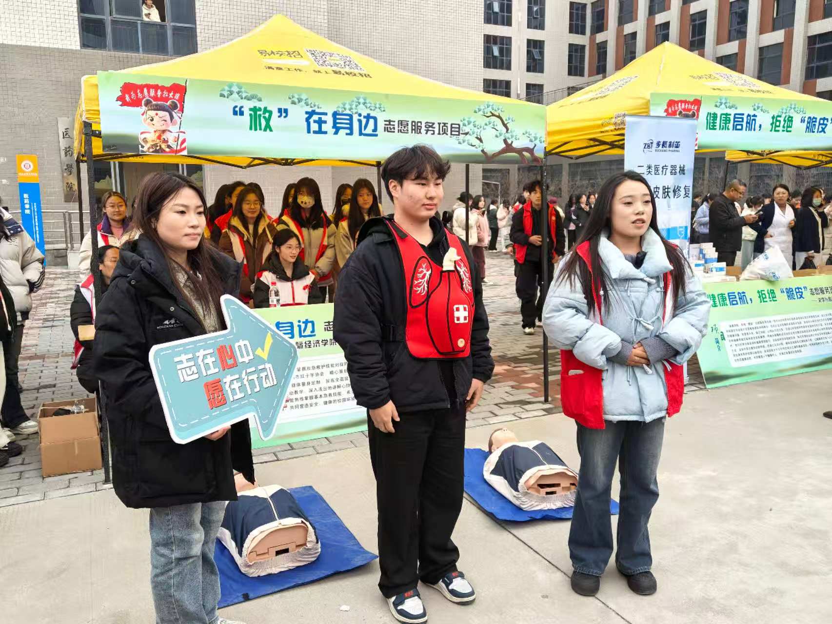 2025年3月5日是第62个“学雷锋”纪念日。为深入贯彻落实习近平总书记对深入开展学雷锋活动的重要指示精神,弘扬新时代雷锋精神,发挥文明实践和志愿服务在助力学校高质量发展的作用。3月5日,太阳成tyc33455ccwww校团委围绕学校“医药+”人才培养体系,于南校区成功举办“学雷锋”志愿服务活动启动仪式暨“志愿服务×健康+”志愿服务项目展演。活动现场,国际经济学院、信息工程学院与咸阳市红十字会携手开展的《“救”在身边志愿服务项目》吸引了众多师生的目光。
