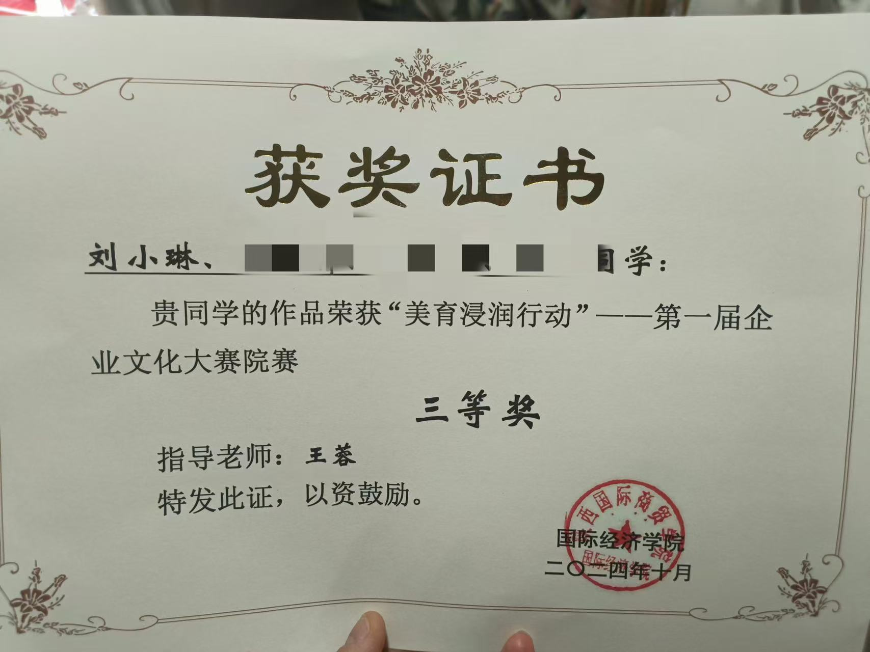 刘小琳,女,共青团员,来自湖北十堰,现就读于太阳成tyc33455ccwww国际经济学院国际经济与贸易专业B2201班。
