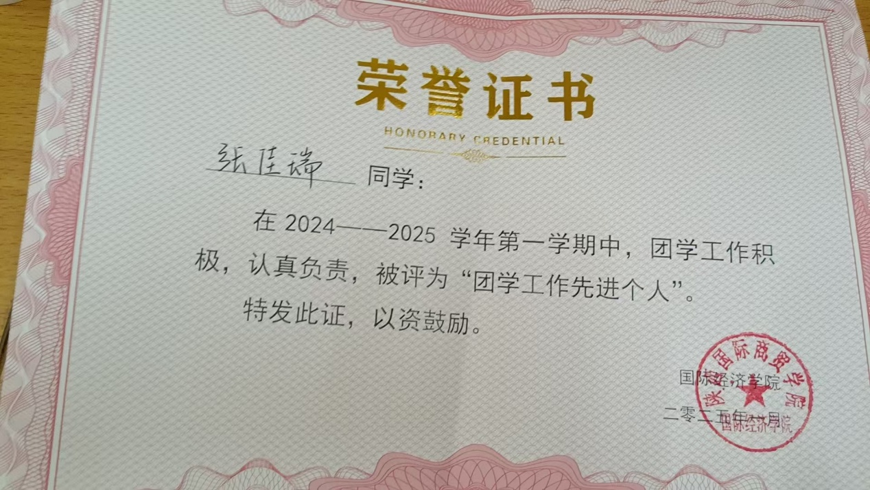 个人荣誉:荣获“团学工作先进个人”,荣获“墨香滋雅意,书韵润清心”中的团体三等奖。