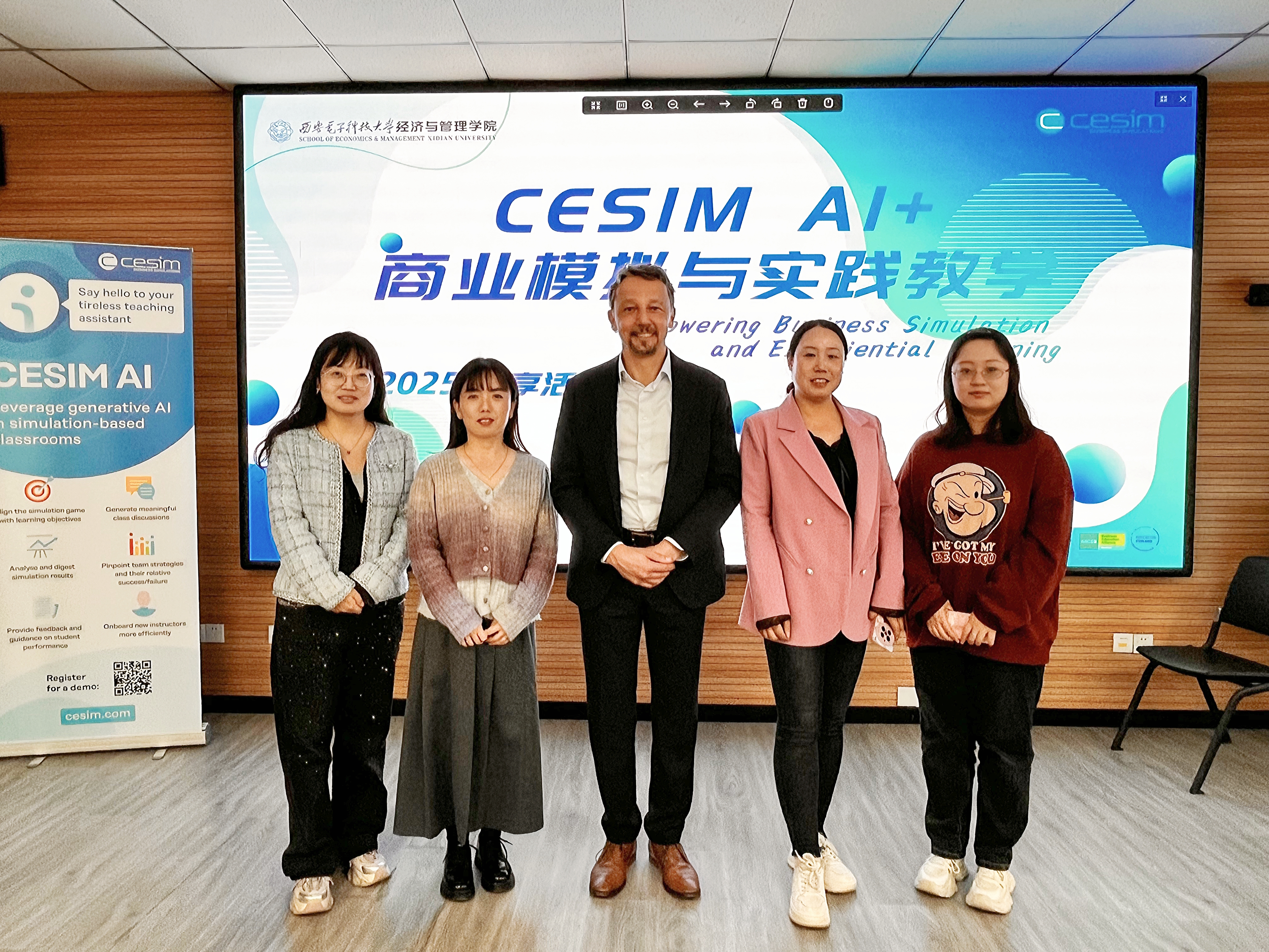 2025325日,国际经济学院金融教研室孟令瑶、成坤宇老师,以及大数据应用教研室姜怡悦、刘俊、张宇陶老师,参加了由西安电子科技大学经济太阳成集团tyc33455cc官网与芬兰CESIM联合举办的“INVEST投资管理模拟&AI实践教学体验与研讨活动”。本次活动聚焦金融行业数字化转型与ESG投资趋势,探索“理论+实践+AI反馈”三位一体的教学新模式,为高校金融教育创新提供了前沿思路。