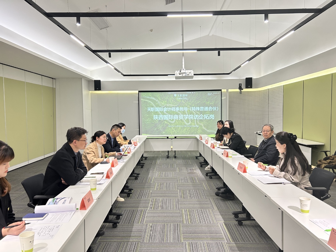 在交流座谈会上,天职国际会计师事务所数智化运营中心相关负责人对贾明远校长一行的到来表示热烈欢迎,并详细介绍了公司的发展历程、业务范围、数智化转型成果以及人才需求情况。他指出,随着行业的快速发展和数字化变革的加速,企业对高素质、复合型会计专业人才的需求日益增长,期待与学校在人才培养方面开展全方位合作,共同为学生提供更多实践机会和职业发展指导。