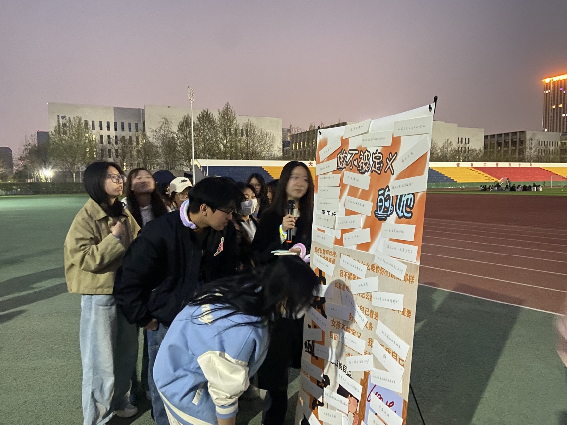 活动伊始,三位团支书围绕团聚主题之光,筑梦奋进之路主题展开宣讲,强调新时代青年应突破标签束缚,在团队协作中绽放个性光芒。宣讲结束后,同学们前往操场分组参与四项创意游戏。在“做不被定义的TA”环节,大家撕下刻板印象标签,写下个性化宣言,以实际行动拒绝被定义;“桃花朵朵开”通过随机组队打破社交壁垒,同学们在欢声笑语中迅速拉近距离;“多人多足”比赛考验团队默契,各组成员协调步伐、携手冲刺活动期间同学们热情高涨,现场秩序井然。各班班委分工明确,宣传组全程摄影记录,志愿服务组保障游戏安全,充分展现了团组织的凝聚力。活动尾声,全体成员合影留念,并清理场地,践行环保理念。