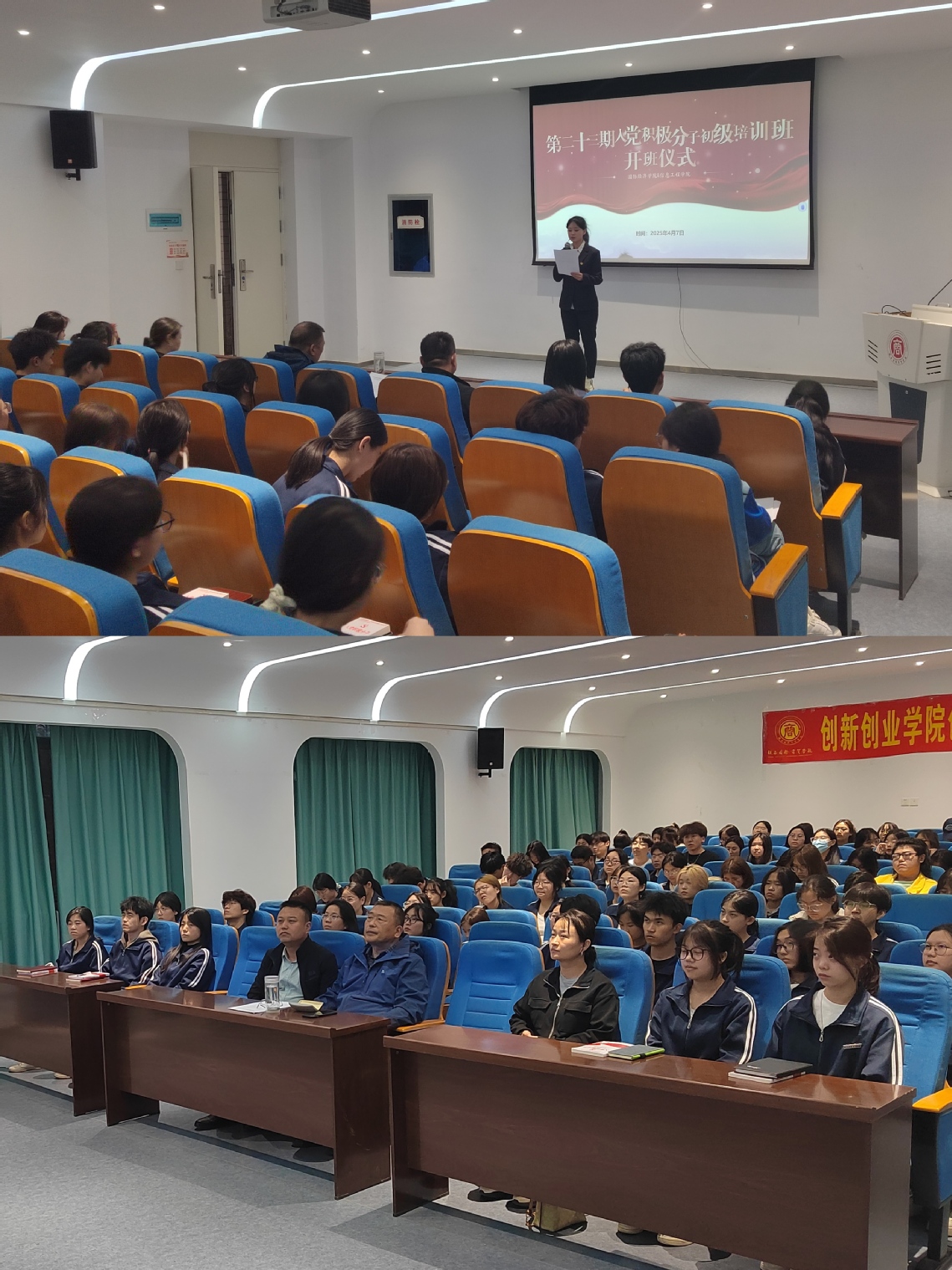 为了切实加强对入党积极分子的培养教育,提高其政治理论知识水平和党性修养,4月7日19点,国际经济学院、信息工程学院在信息工程学院二楼报告厅联合举行第二十三期入党积极分子初级党课培训班开班仪式暨书记开讲“入党动机第一课”,国际经济学院&信息工程学院党总支书记王彪、信息工程学院学生党支部书记叶向东、国际经济学院学生党支部书记常伟、两院学生辅导员以及本次全体入党积极分子参加了此次开班仪式。