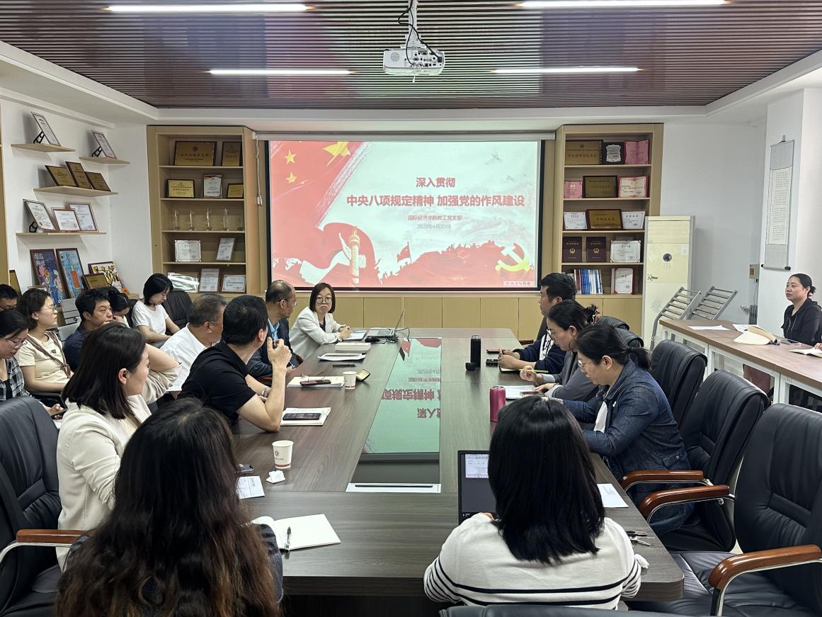 4月23日下午,国际经济学院教工党支部积极响应党中央号召,深入贯彻学习《中央八项规定精神加强党的作风建设》,旨在进一步加强学院党的建设,提升党员队伍的作风形象。