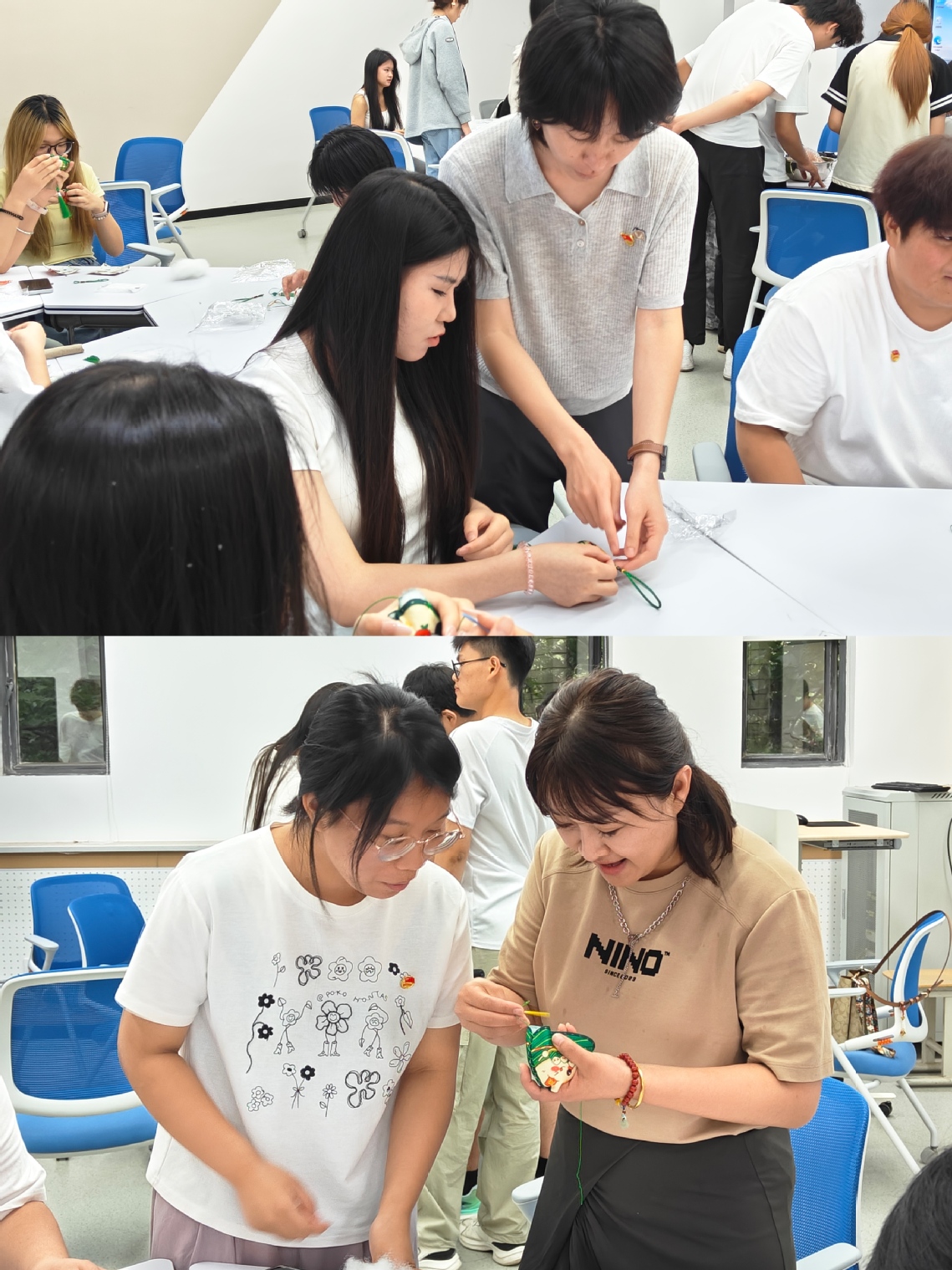 在手工缝制香囊环节,现场准备了色彩斑斓的布料、香料和针线。党员们手把手地教新生穿针引线,缝制出一个个造型精美的香囊。淡淡的艾草香弥漫在空气中,不仅寄托了端午驱虫辟邪的美好寓意,更拉近了党员与新生之间的距离。