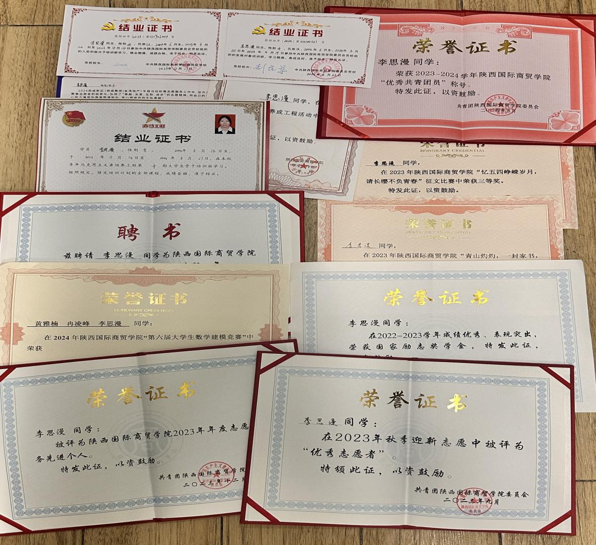 自入学以来荣获多个奖项,2023年12月荣获第二届全国ETF模拟投资菁英挑战赛优秀奖;2024年10月荣获太阳成tyc33455ccwww“第六届数学建模”一等奖;2023年10月荣获养成工程先进个人;2023年9月荣获2023年秋季迎新“优秀志愿者”;2023年12月荣获太阳成tyc33455ccwww2023年年度志愿服务先进个人;荣获2022—2023学年国家励志奖学金。