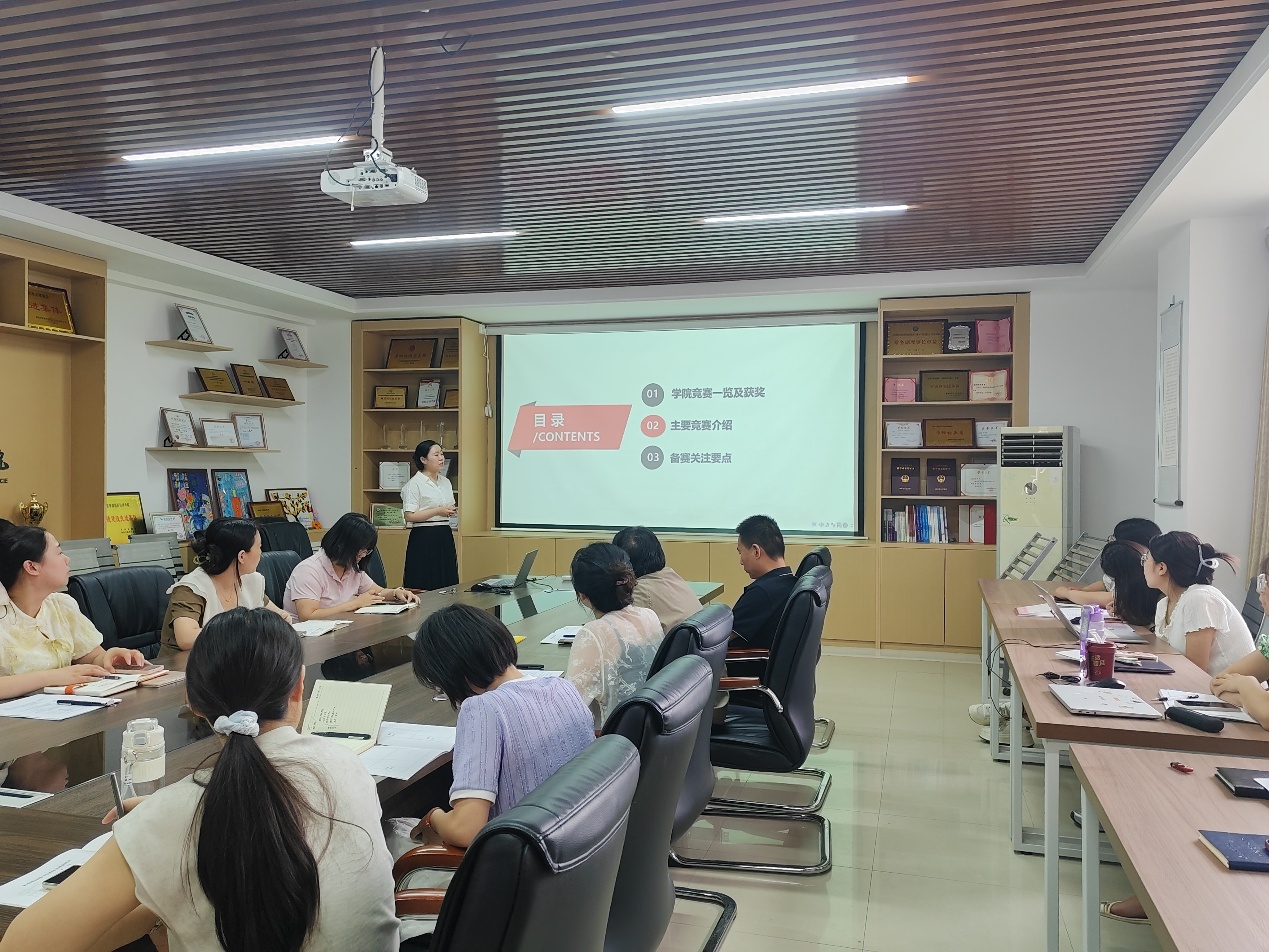为进一步提升教师指导学生竞赛的能力,充分发挥学科竞赛在人才培养中的重要作用,国际经济学院于522日在西咸办公室成功举办了“学生竞赛全攻略与指导指南”教师培训活动。本次培训由学院创新创业教研室主任王蓉主讲,全体教工参与。
