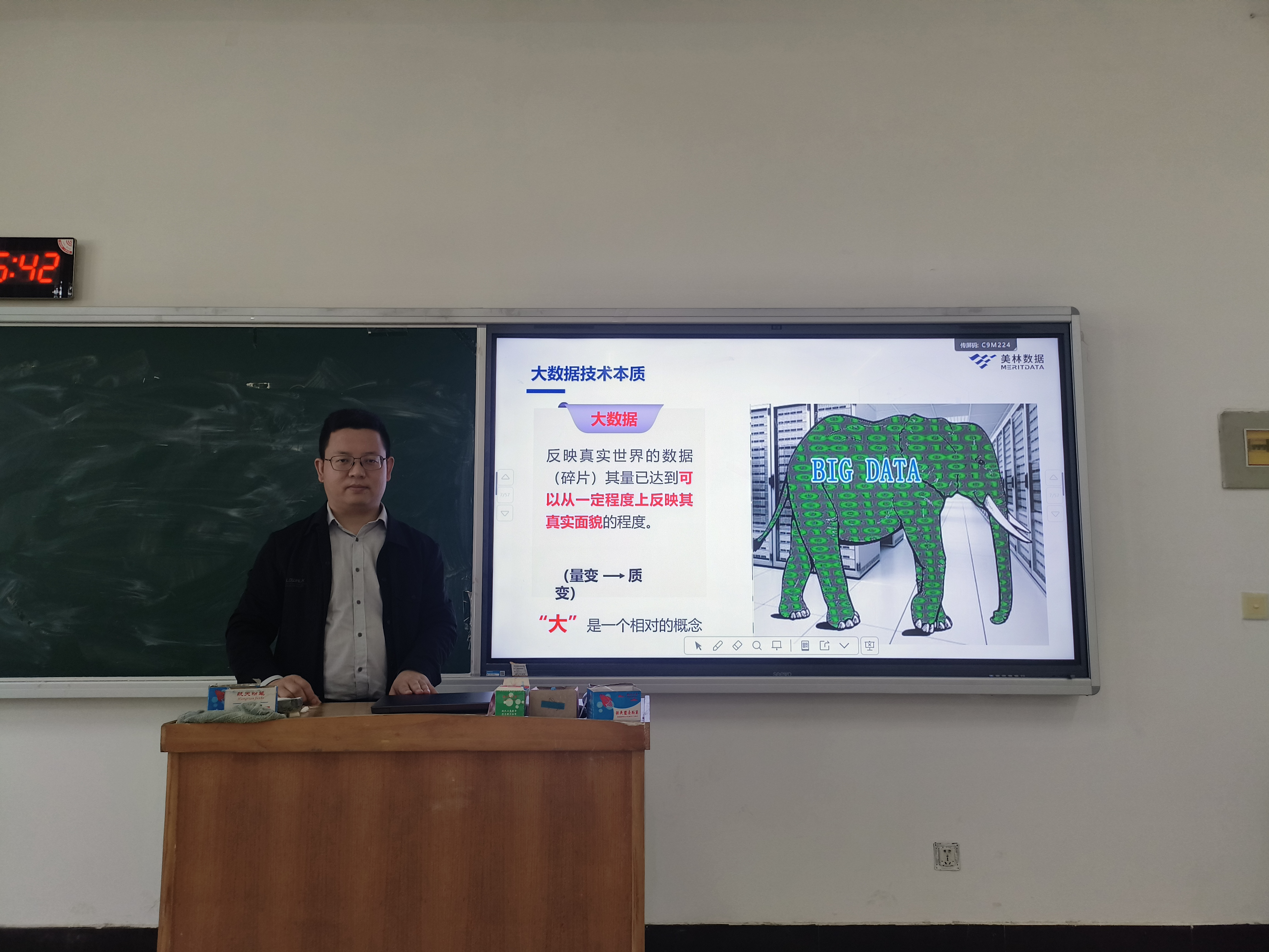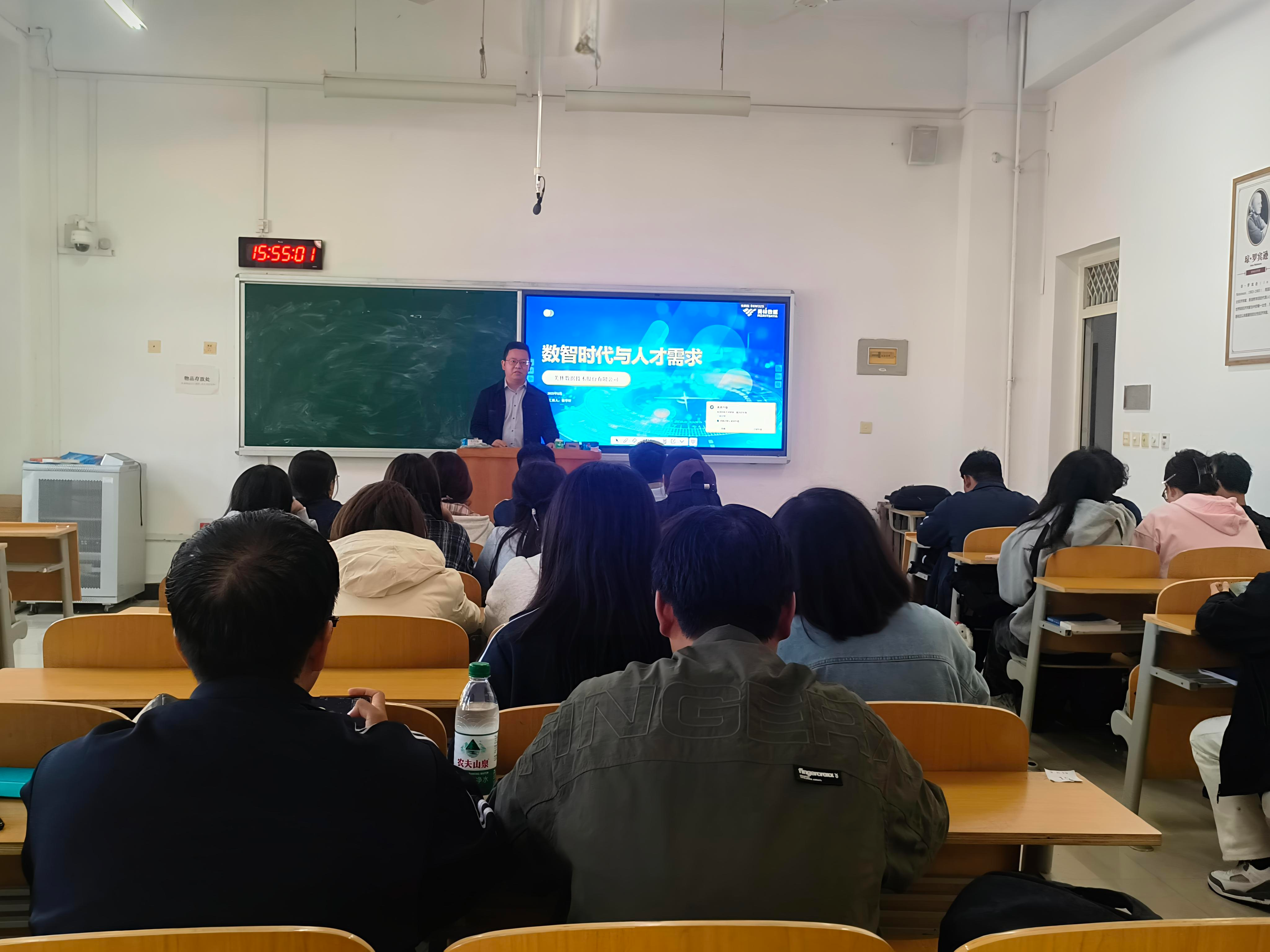 2025年9月23日,大数据管理与应用专业邀请美林数据技术股份有限公司高级产教融合咨询顾问靳学昕来校开展主题为《数智时代与人才需求》的专题报告,帮助同学们初步构建对大数据行业的认知框架,明确未来学习方向与发展路径。