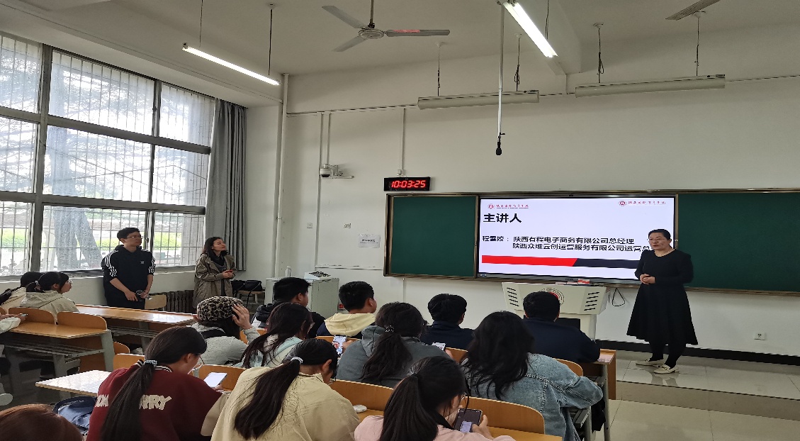2025年9月24日,国际经济与贸易专业特邀陕西有程电子商务有限公司总经理、陕西众维云创运营服务有限公司运营总监程雪姣和加拿大多伦多Lightleaf海外仓创始人、加拿大加诺国际技术部主管、项目组长唐王豪来我院开展主题为《乘“跨境东风”解锁国贸专业的未来就业新蓝海》和《从程序员到海外仓》专题报告,结合国贸专业人才培养目标、跨境贸易行业趋势及海外仓创业实践案例,为新生解读专业价值、明晰就业方向,为其开启专业学习之旅注入“实践动能”。