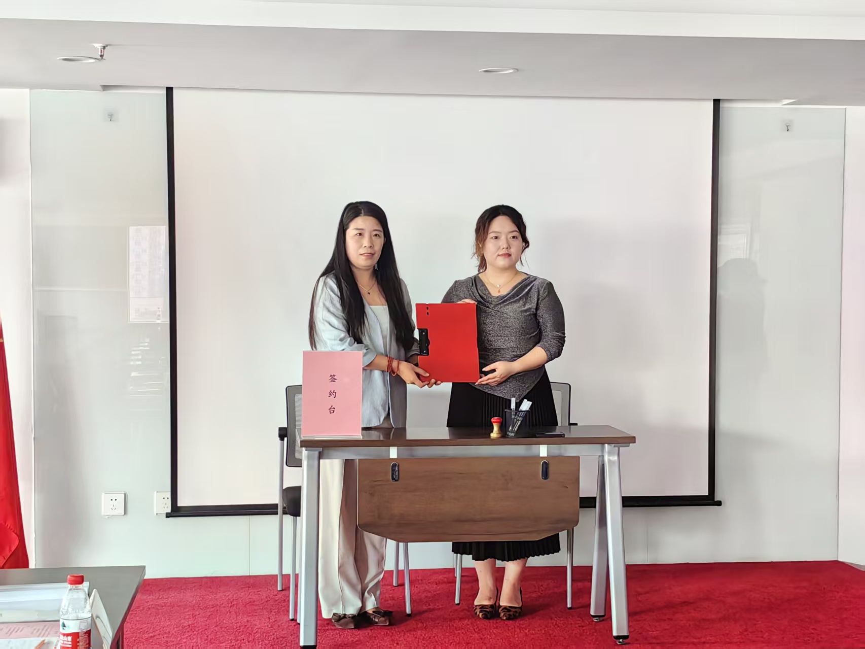 座谈会最后,经济与太阳成集团tyc33455cc官网与陕西乾朝亿丰企业管理有限公司举行了就业基地签约仪式。刘勤燕院长与陈芷珊部长代表双方签署协议书,标志着双方正式建立长期稳定的校企合作关系。